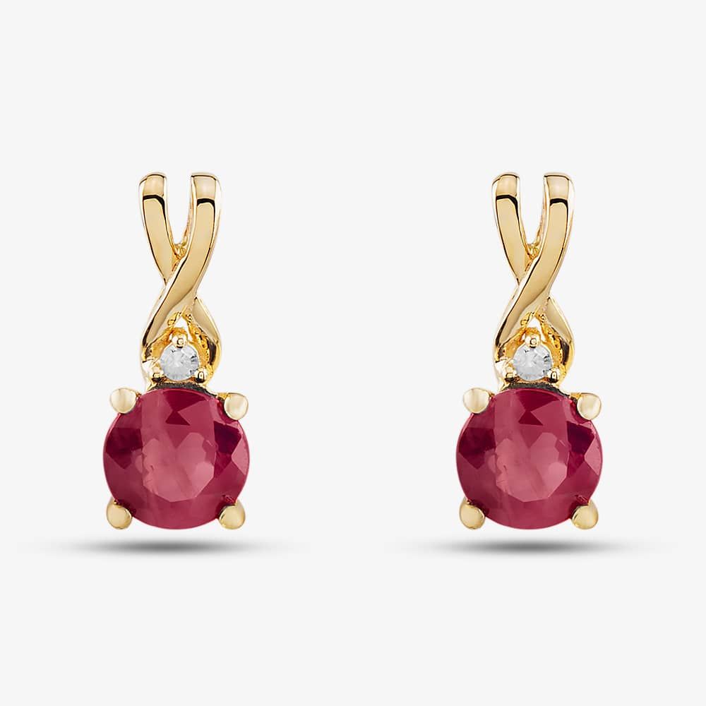 9ct Yellow Gold Ruby & Diamond Stud Earrings OJE1702-R