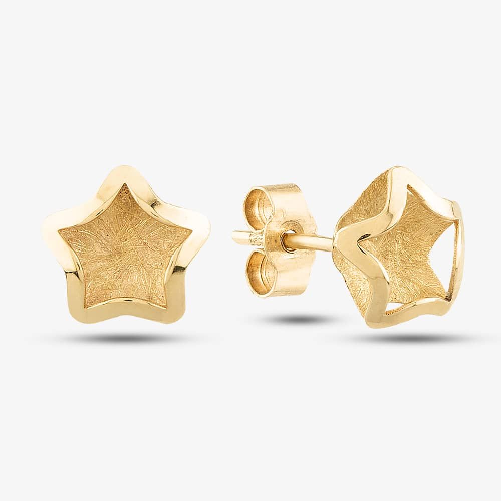Contrasting their highly polished edging with a satin brushed centre these elegant pentafoil shaped 9ct yellow gold stud earrings can be worn day or night.
