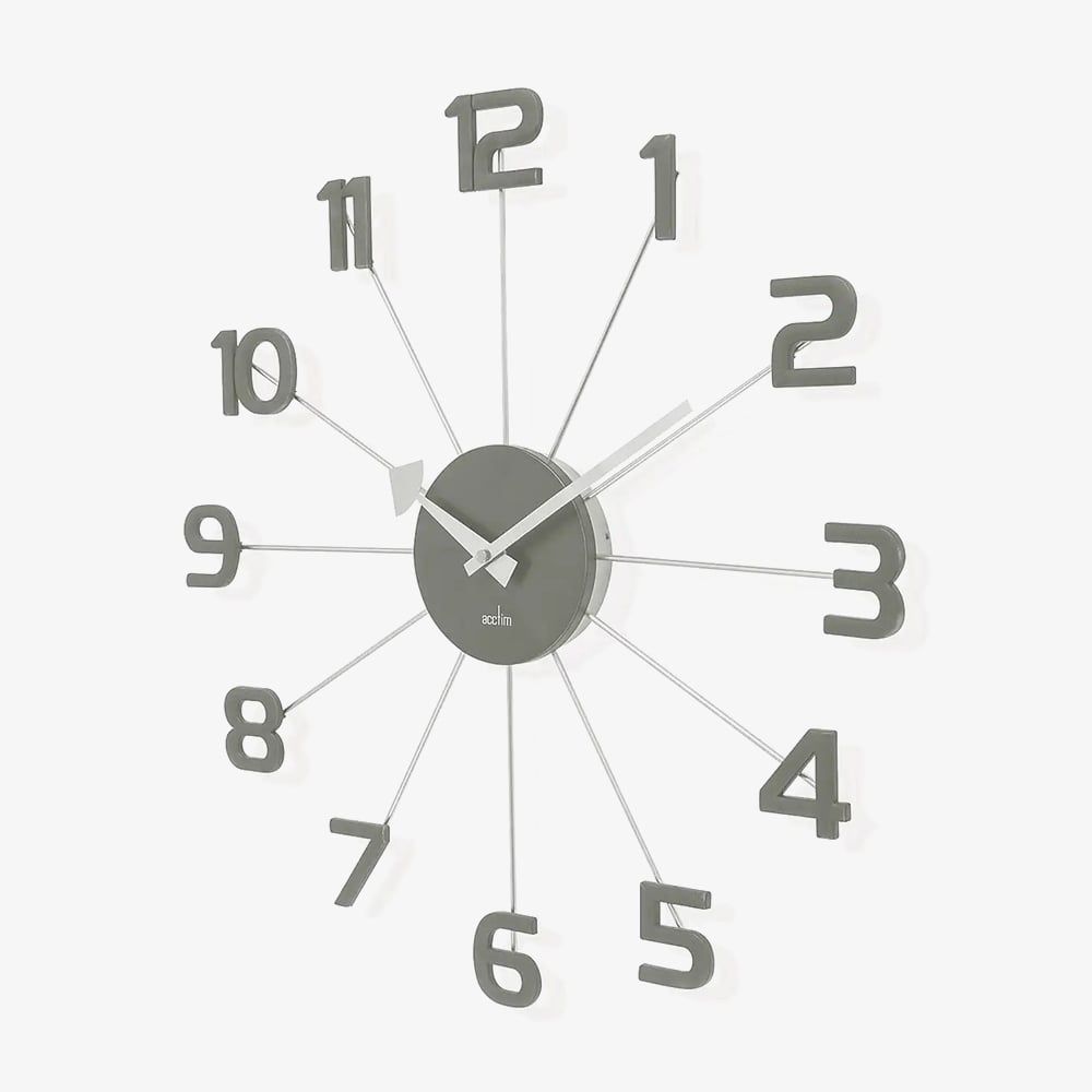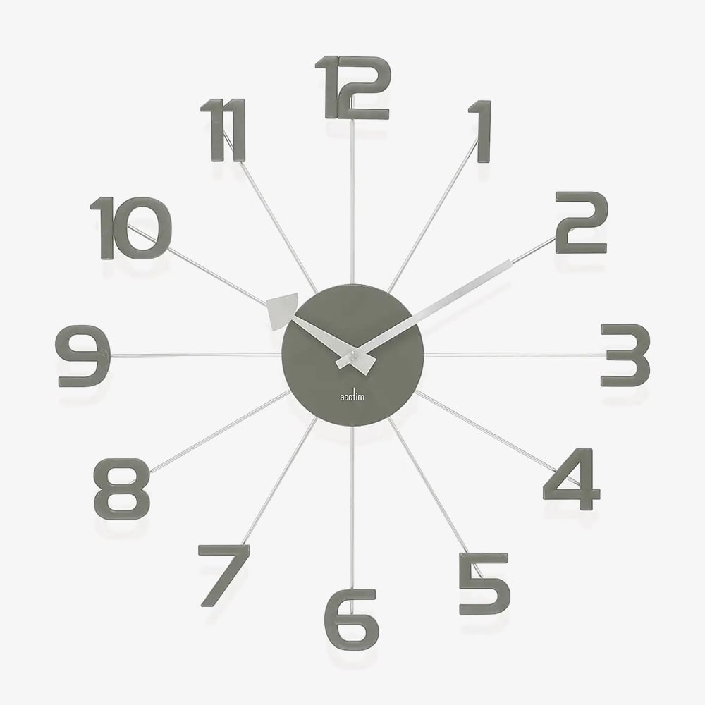 Inspired by 20th-century modernist design, the Astraea Wall Clock combines minimalist style with architectural elegance. Featuring sleek metal spokes tipped with painted numbers and powered by a precise quartz movement, it’s a bold yet refined statement piece for any modern space.