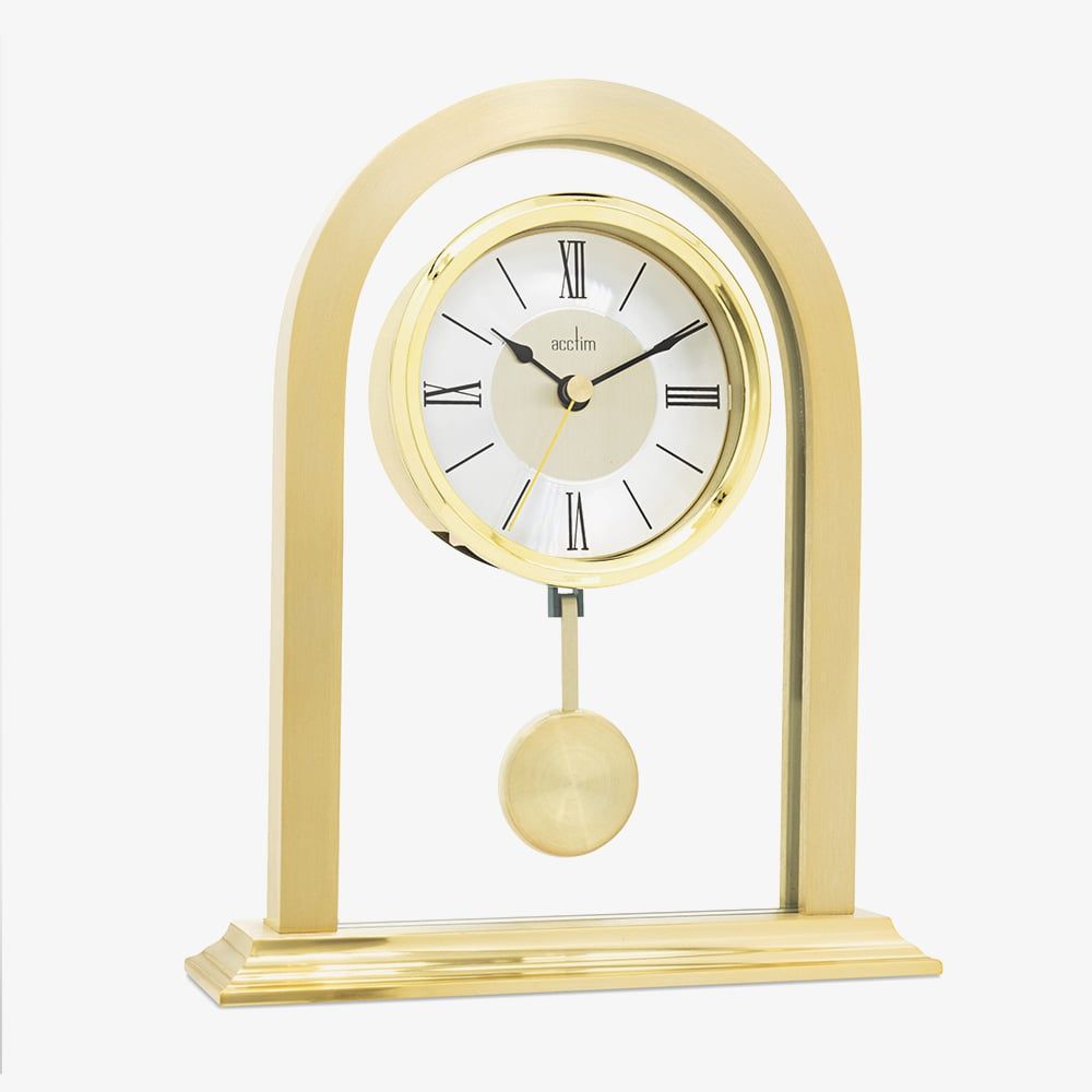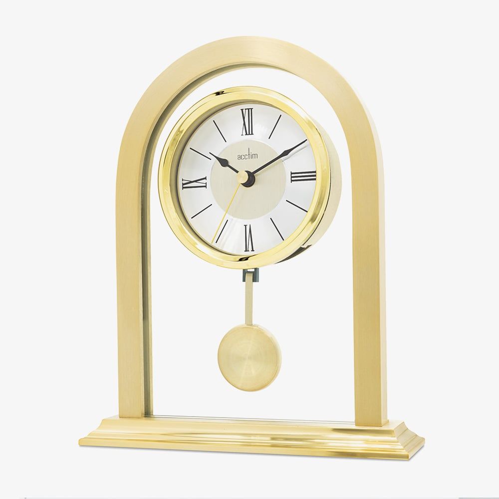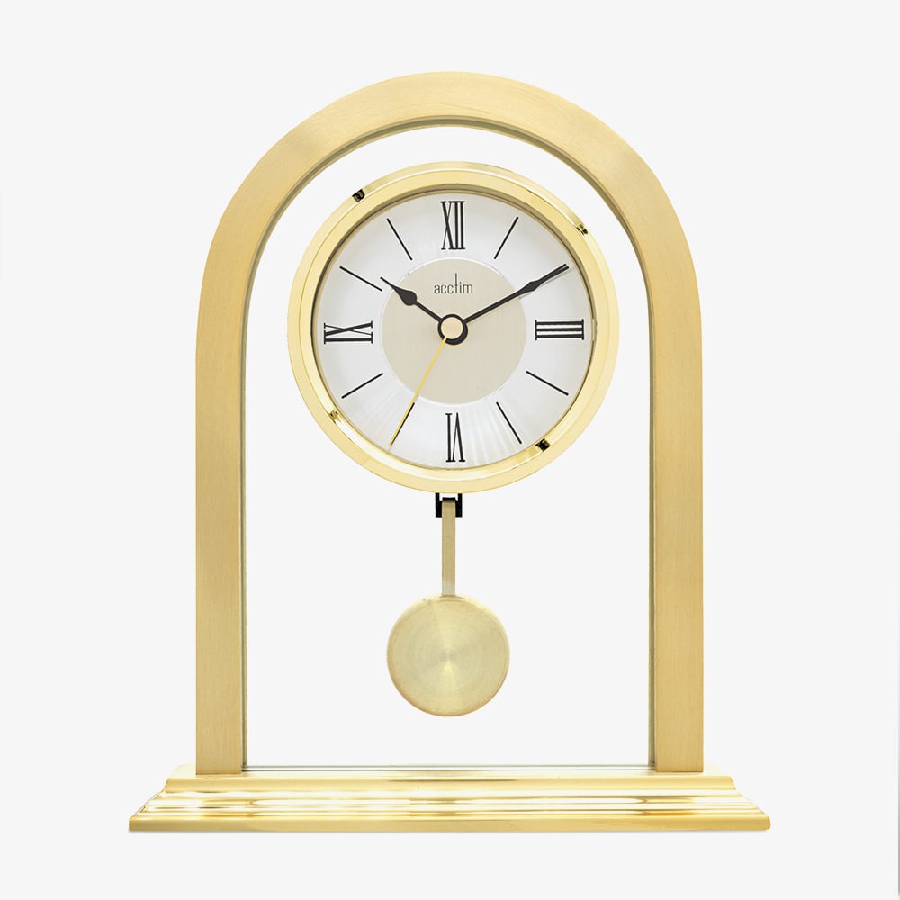 Acctim Colney Gold Tone Table Clock – A modern take on a classic, the Colney features an arched design with a brushed and polished metal case, contemporary glass mount, spun chapter ring, and energy-efficient quartz movement for timeless elegance.
