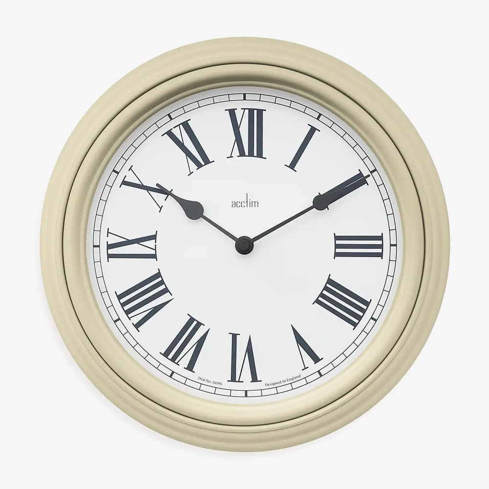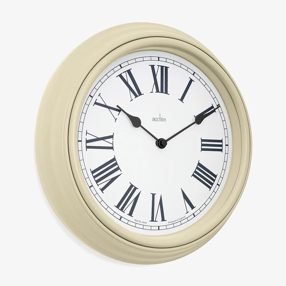 Acctim Devonshire Cream Wall Clock – A classic timepiece featuring a clean white dial with easy-to-read numerals, set in a soft cream case. Its timeless design adds a touch of elegance to any room.
