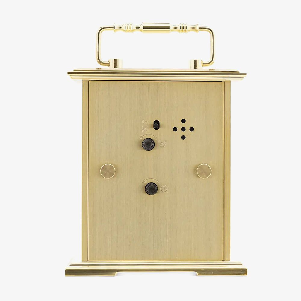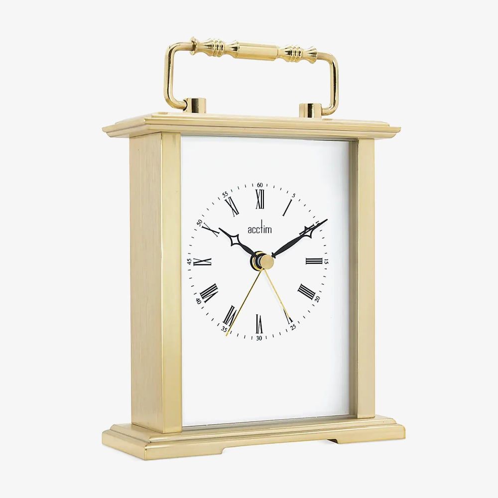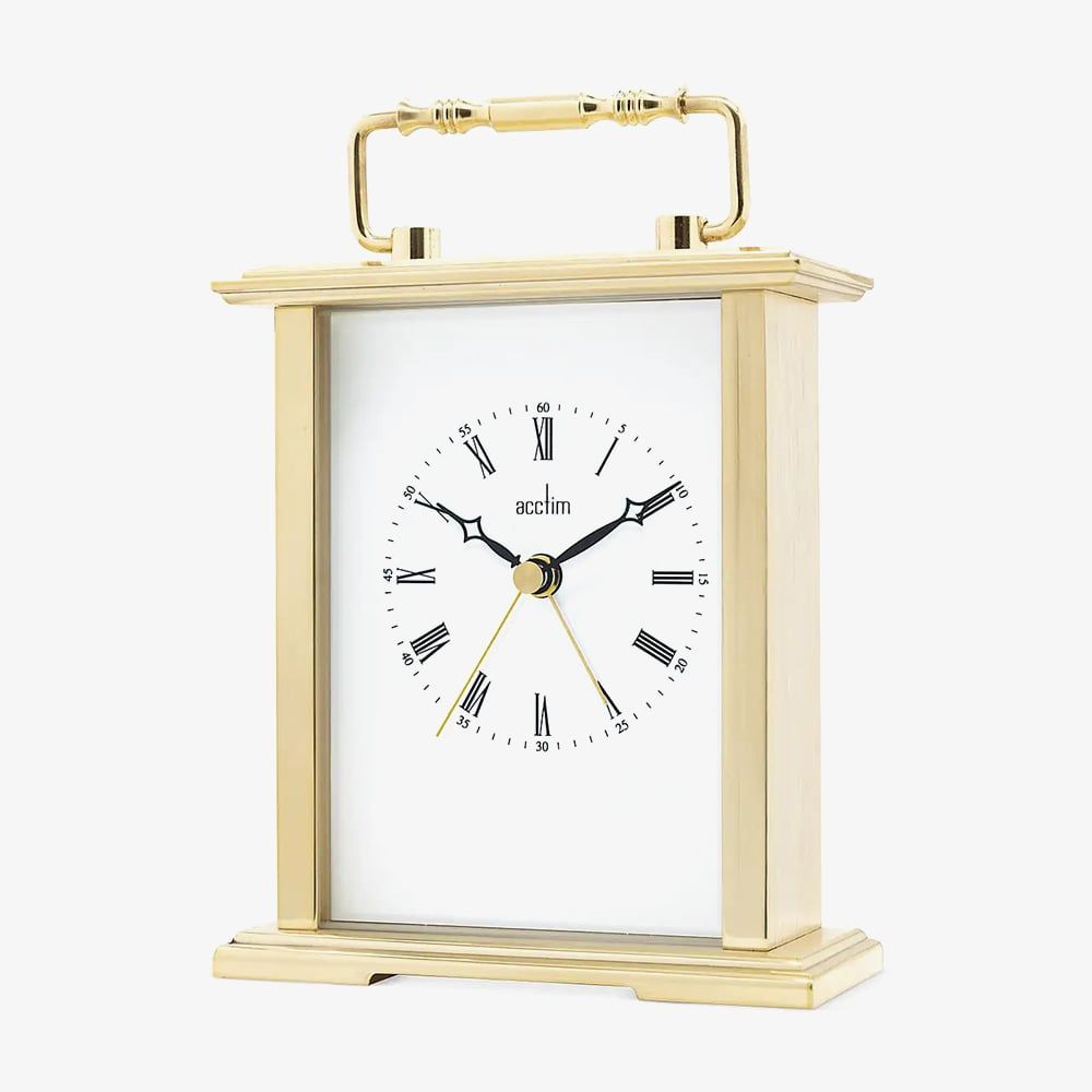 The Acctim Gainsborough updates the classic 19th-century carriage clock with a clean dial, Roman numerals, and decorative hands. It adds modern features like an alarm and minute markers, while retaining a traditional polished handle and bevelled case for a travel-ready look.