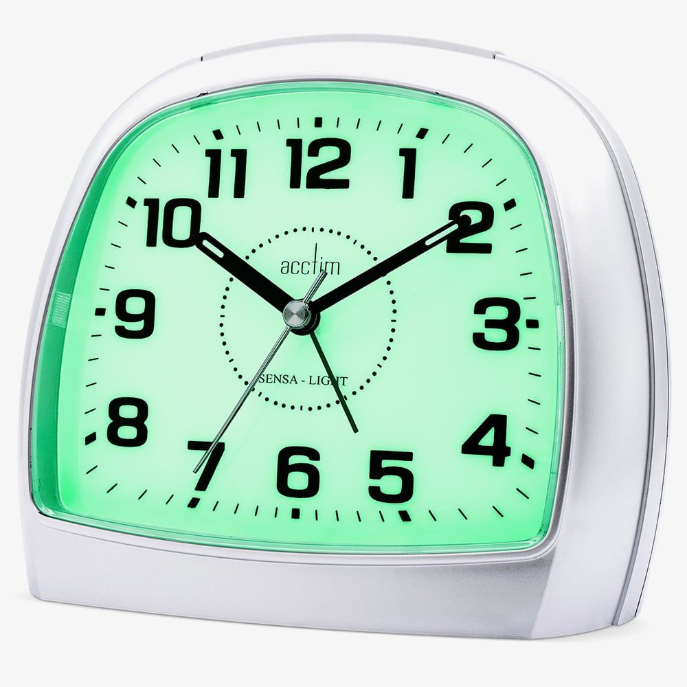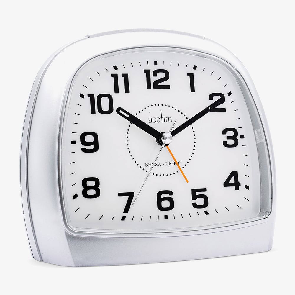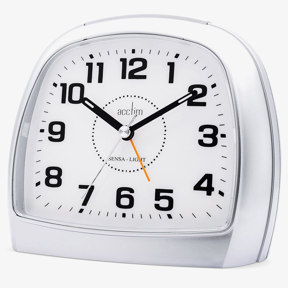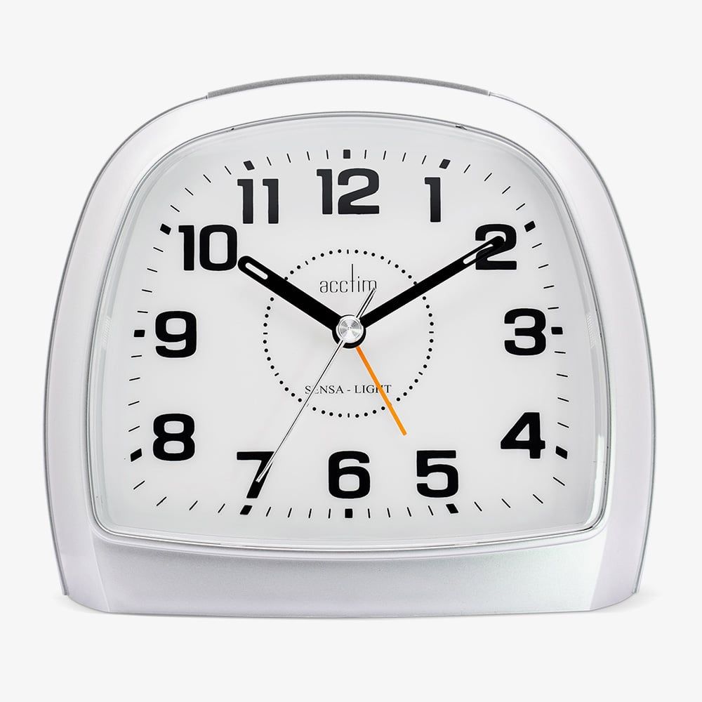 Stay punctual with the Acctim Sensa-Light Three Alarm Clock. Featuring a sleek silver case and white dial, it offers alarm and light functions with a light sensor for automatic illumination. Volume controls and battery operation ensure reliable performance, combining practicality and modern convenience in a stylish design.