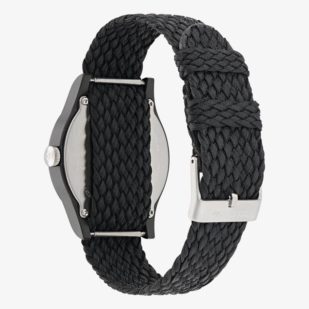 • Presented on a black fabric strap with traditional buckle.