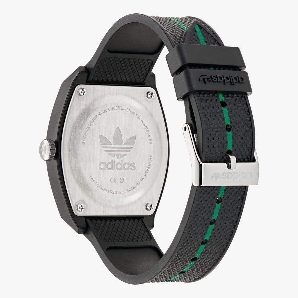 A perfect mix of classic design, urban flair, and everyday comfort, the Project 2 Watch showcases vibrant adidas Originals graphics with glowing accents. Its durable resin case and strap ensure longevity, while the bold black and green colour scheme adds a striking edge.