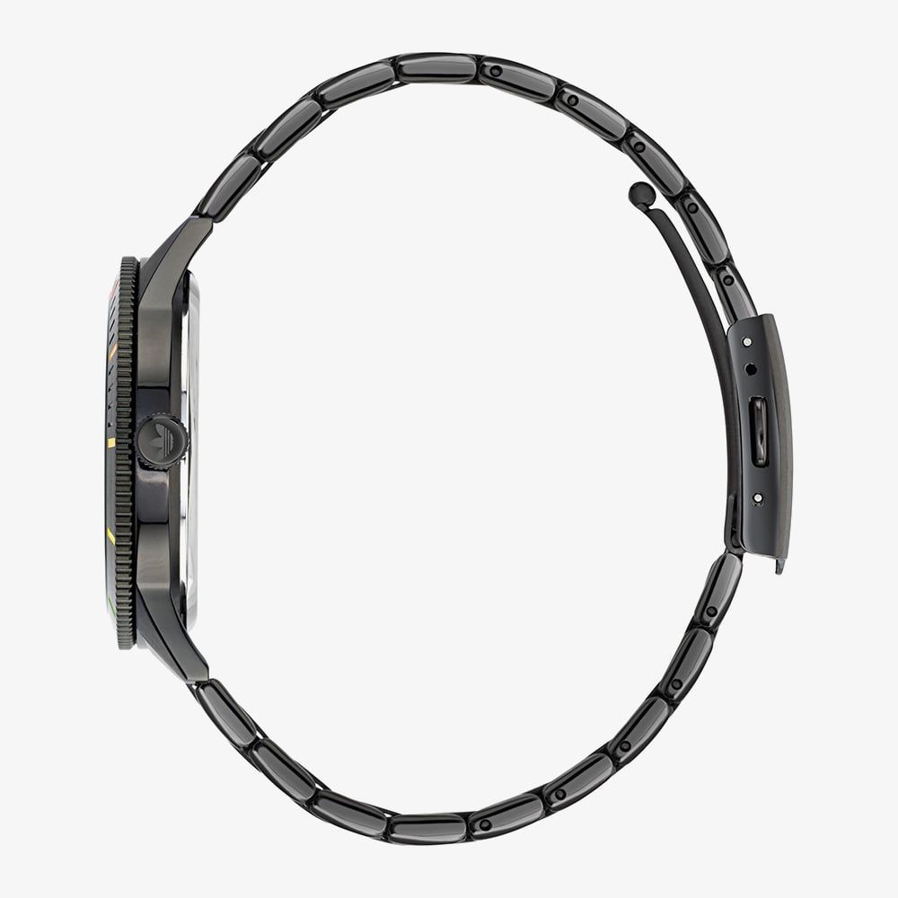 A timeless design with practical everyday functions, including hours, minutes, and seconds. The adidas Originals Edition Three watch stands out with its unique California dial, combining Roman and Arabic numerals on the face. A brushed and polished three-link bracelet adds the perfect finishing touch.