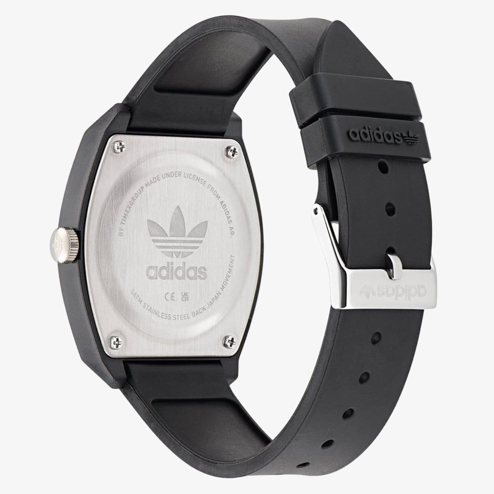 A trendy and bold timepiece that reflects Adidas's modern streetwear aesthetic, featuring a minimalist all black design accented by a multicoloured Adidas logo in the centre of the dial, the logo adds a vibrant touch to this watch. Water resistant up to 50m and powered by a reliable quartz movement, this watch can be worn comfortably by both men and women, making it a flexible option for anyone looking to add a pop of colour to their ensemble.