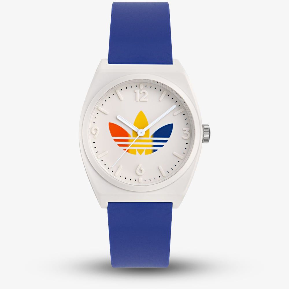 The perfect combination of classic watch design, streetwear flair, and everyday comfort, the Project Two watch showcases the iconic Adicolor palette and playful graphics from adidas Originals.