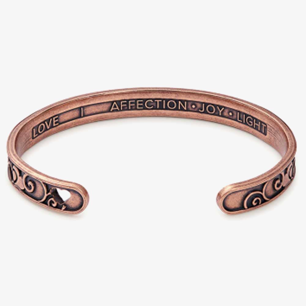 Inscribed with Affection, Joy and Light, this cuff from ALEX AND ANI is perfect for wearing your heart on your sleeve. With the stylised 'Love' housed between twin pink crystals at the forefront of this bangle, it is a pleasant surprise to discover the cut out heart at the end, showing a glimpse of skin.