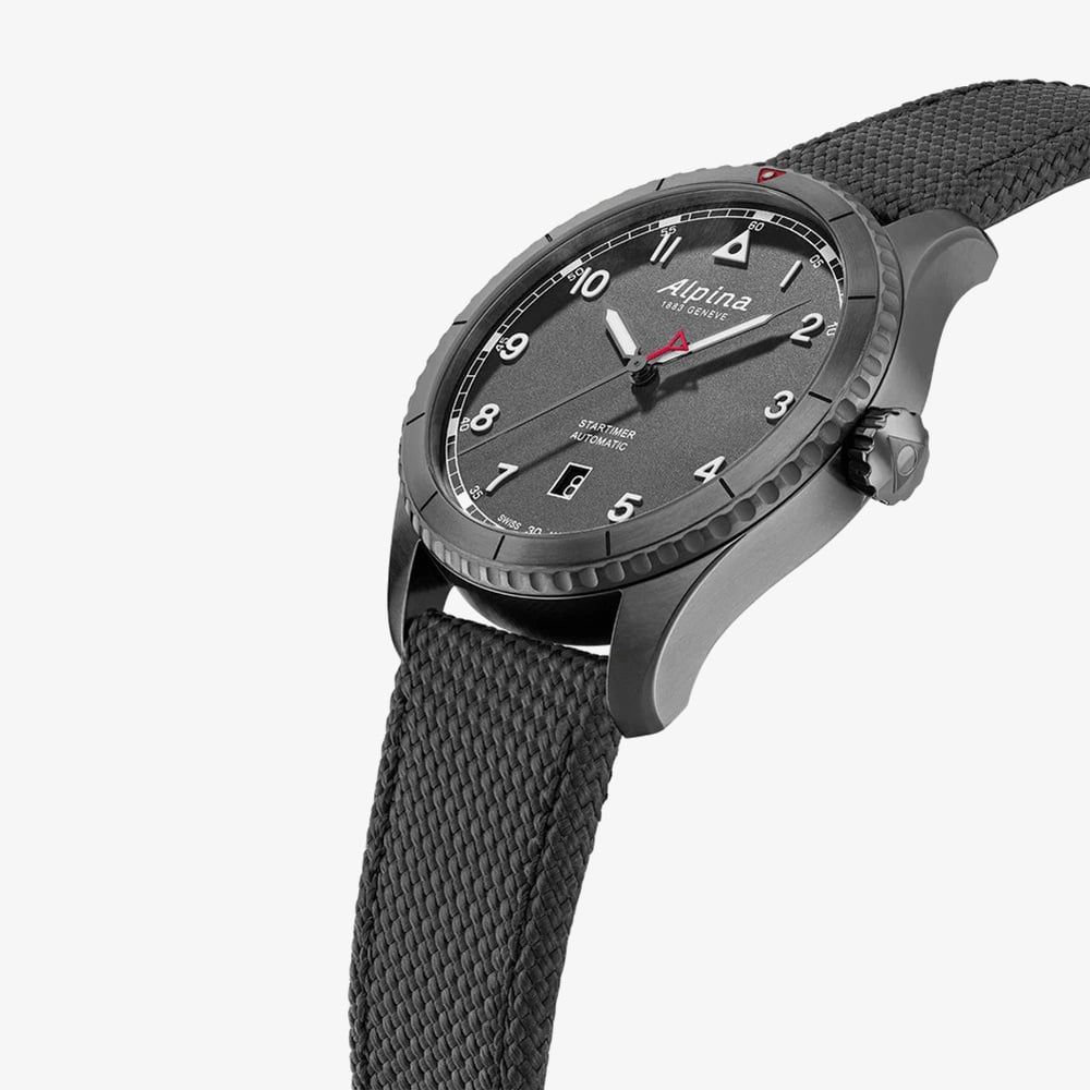 The Startimer Pilot Automatic combines functionality and sustainability, featuring a 41mm case with a Recycle PET rubber strap. Powered by an automatic movement with a 38-hour power reserve, it offers hours, minutes, seconds, and a date display at 6 o'clock. The watch is protected by scratch-resistant sapphire crystal glass and showcases a sleek grey dial, making it a durable and stylish choice for any pilot.