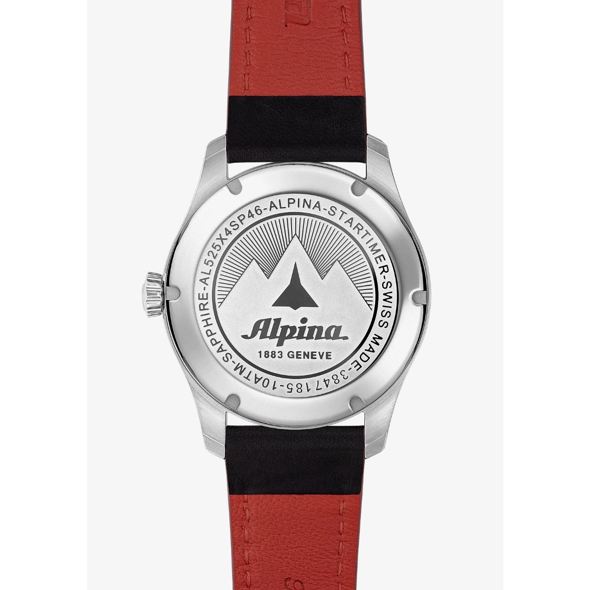 Alpina AL-525NW4S26 Startimer Pilot Automatic watch combines a 41mm round-shaped brushed stainless steel case and a brown calf leather strap with a traditional buckle. It has a petroleum blue analogue dial with silver luminescent hands and a date display at position six with a white border, protected beneath scratch-resistant convex sapphire crystal glass with an anti-reflection coating. Power is generated by the AL-525 Caliber automatic movement with an approximate power reserve of 38 hours. This model also has a water resistance of up to 100 metres.