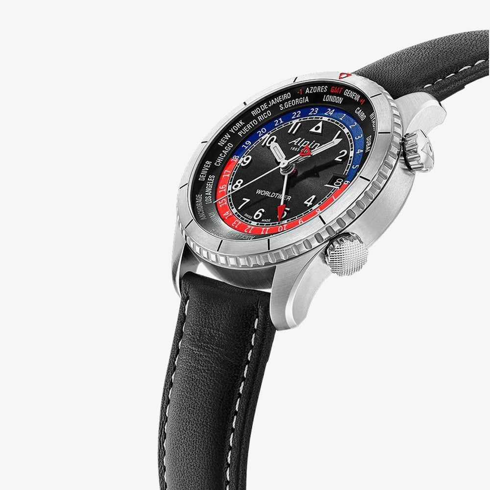 The Startimer Pilot Quartz Worldtimer combines classic style with modern functionality. Featuring a 41mm case, scratch-resistant sapphire crystal, and a calf leather strap, it offers quartz-powered precision with GMT, world time, and a date window at 3 o’clock—perfect for the savvy traveller.