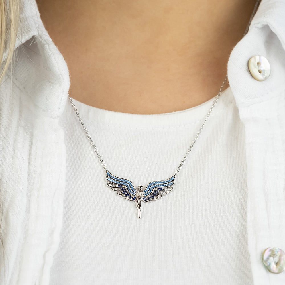 Angel Whisperer Silver & Blue Cubic Zirconia Angel Pendant Necklace ERN-FLYANGEL-ZIBL Angel Whisperer Silver & Blue Cubic Zirconia Angel Pendant Necklace ERN-FLYANGEL-ZIBL