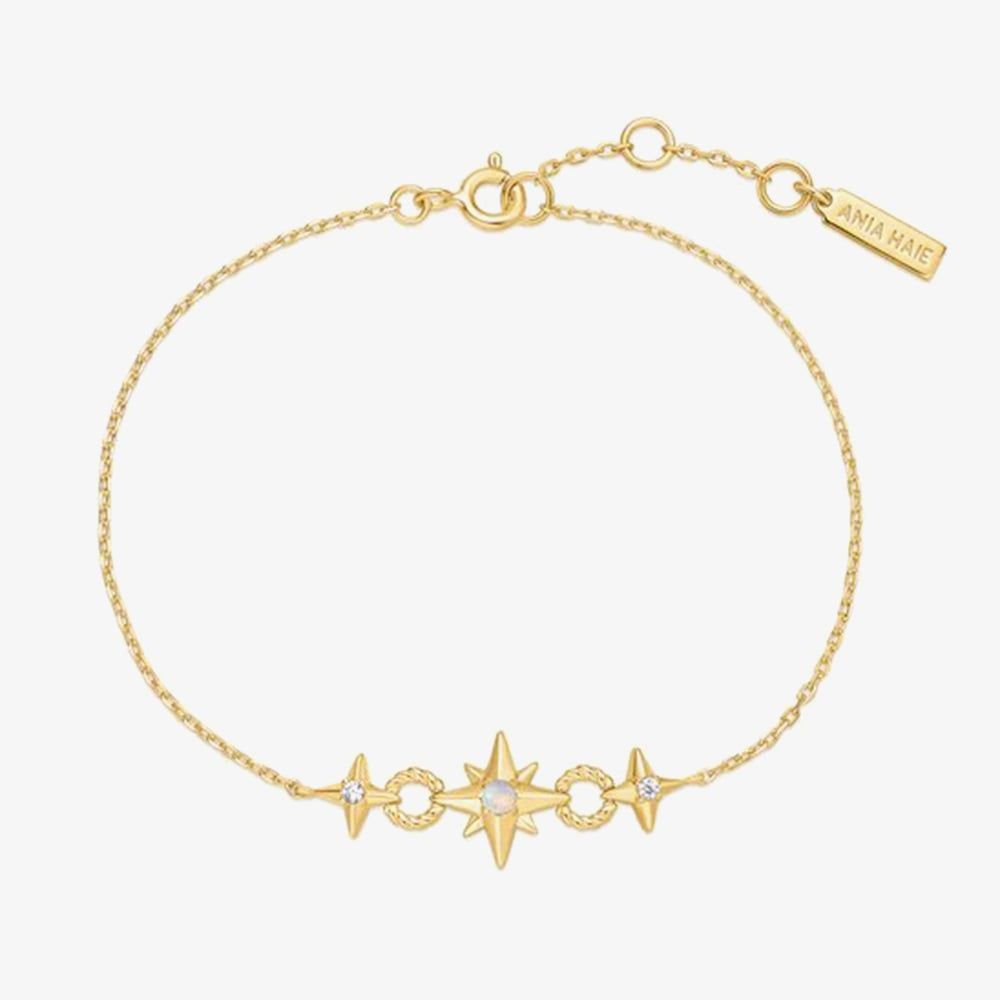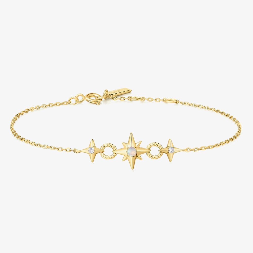 Inspired by nature’s untamed beauty, the Chill Voyager bracelet adds a touch of carefree elegance to any look. Featuring a radiant Kyoto opal set in an eight-pointed star, flanked by two smaller stars and connected by delicate links, it’s perfect for layering or wearing solo. Crafted from 925 sterling silver with 14ct gold plating and accented with Kyoto opal and cubic zirconia, this piece brings effortless charm and a hint of celestial sparkle.