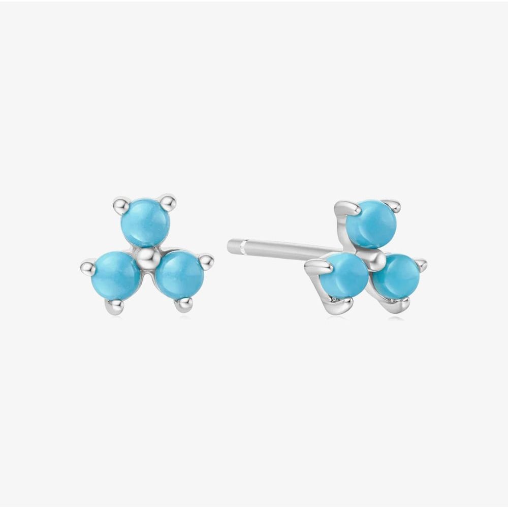 Add a touch of serenity with these lotus flower stud earrings, crafted from rhodium-plated sterling silver. Featuring three lab-grown turquoise stones arranged in the shape of a lotus flower, these earrings offer a vibrant pop of colour and timeless elegance. Perfect for both everyday wear and special occasions.