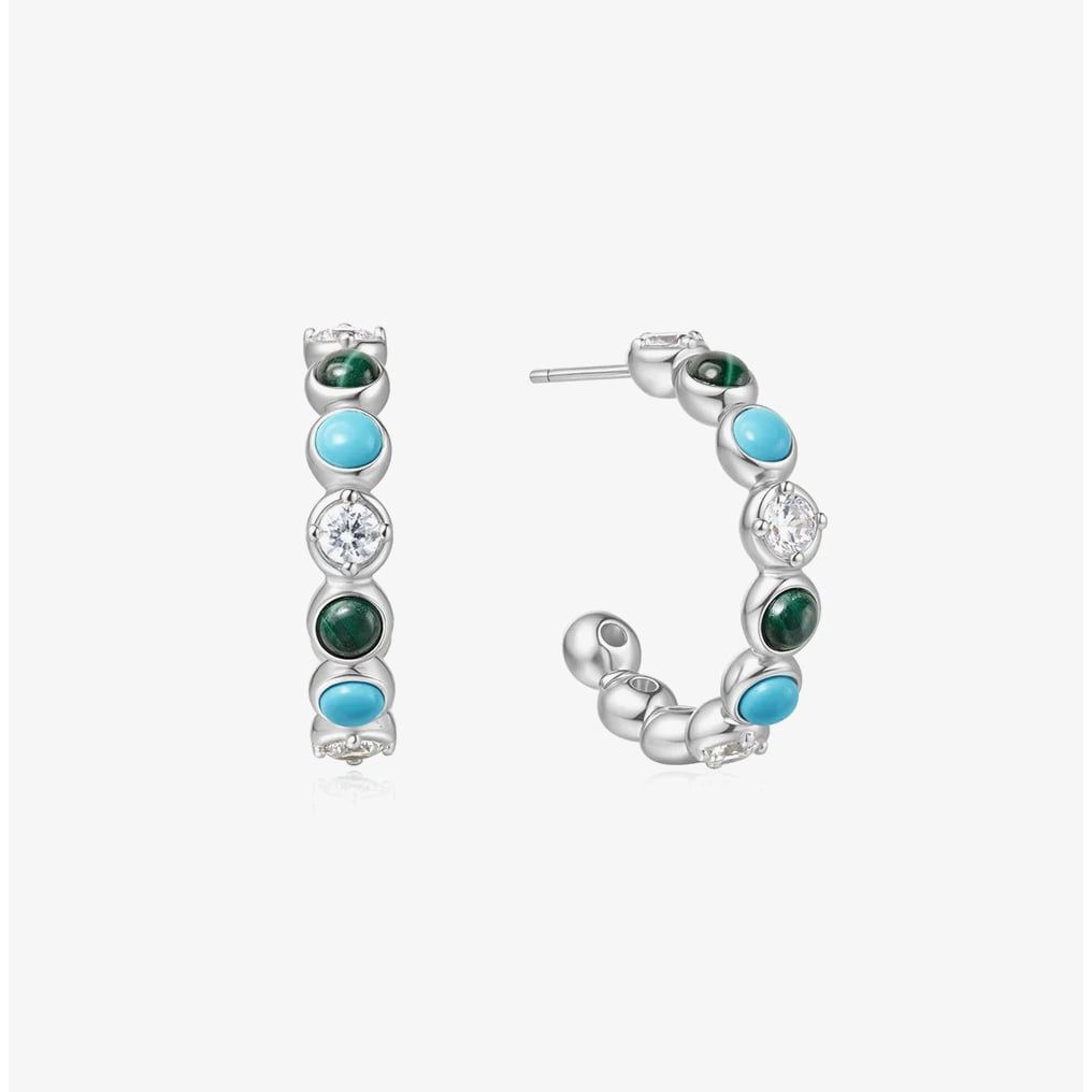 Ania Haie Chill Voyager Sterling Silver Multi Stone Beaded Hoop Earrings E063-08H