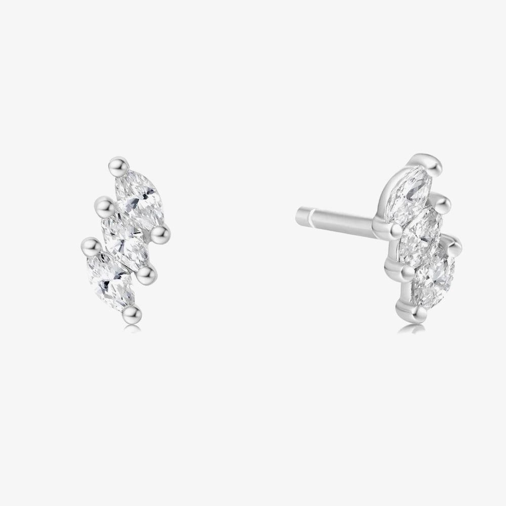 From the Chill Voyager collection, these elegant triple marquise studs are crafted from sterling silver and set with sparkling white cubic zirconia stones. Their modern design adds a refined touch of sparkle, perfect for enhancing both everyday and special occasion looks.