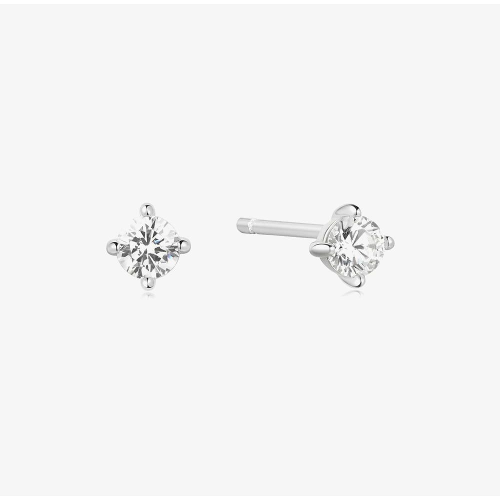 These classic stud earrings feature a single round white cubic zirconia stone set in rhodium-plated sterling silver. Simple yet elegant, they add a subtle touch of sparkle to any look. Perfect for everyday wear, these versatile studs can be worn alone or paired with other pieces for a layered effect.