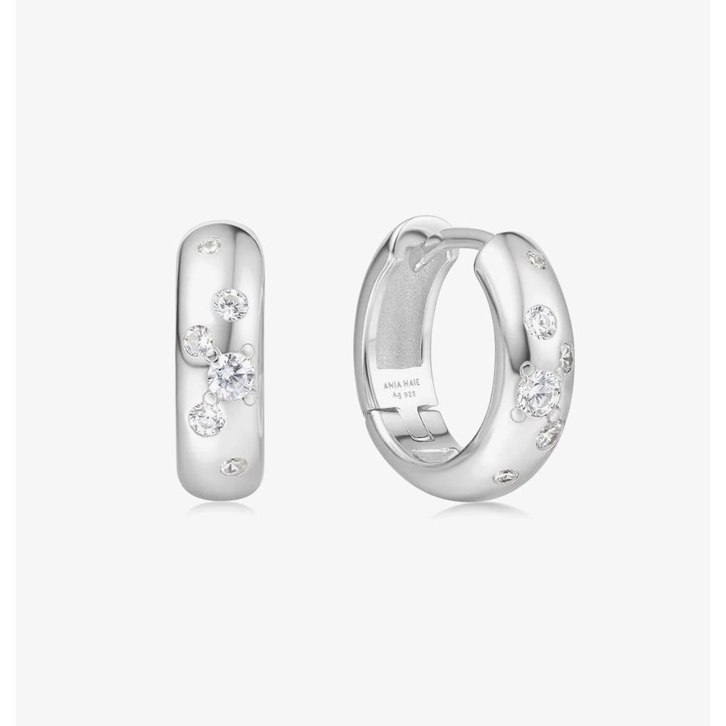 Designed for the woman who loves elegance, these chunky hoops blend charm with refined sophistication. Crafted from rhodium-plated sterling silver and adorned with sparkling white cubic zirconia stones, they add just the right amount of shine to any look. Perfect for both upscale events and everyday wear.