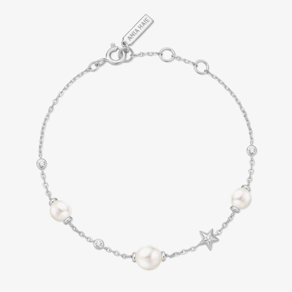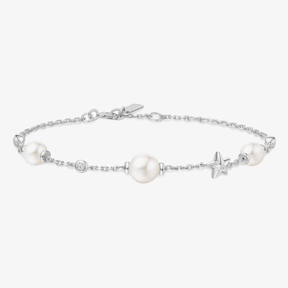 Elegant with a hint of whimsy, the Miss Dainty Pearl & Star Station Bracelet is crafted from sterling silver with rhodium plating. Featuring delicately spaced shell pearls and sparkling cubic zirconia, it's accented with a star motif that adds a playful yet refined touch. Perfect for everyday wear or professional settings, this bracelet brings subtle charm and sophistication to any look.