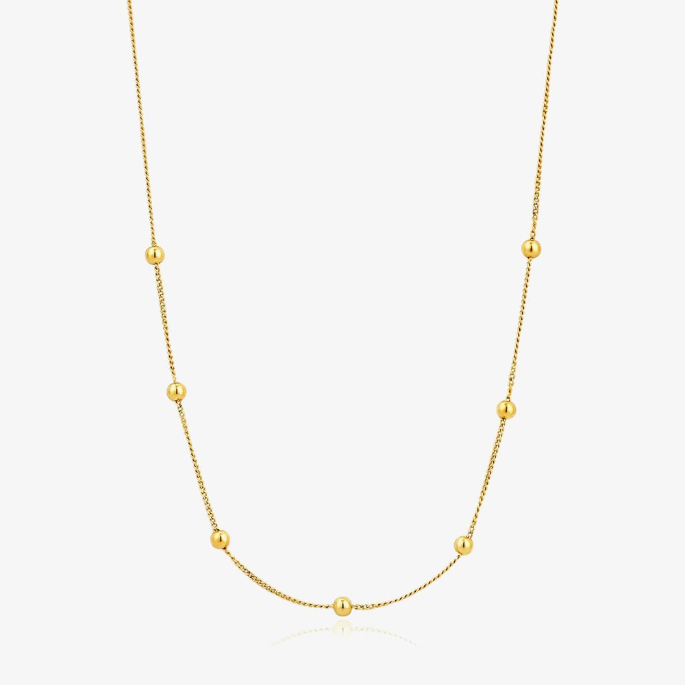 Part of the Modern Minimalism collection, this necklace beautifully combines simplicity and elegance with its delicate chain accented by finely crafted beads. Made from 14ct gold-plated sterling silver, it offers a subtle yet sophisticated shine that effortlessly enhances any outfit. Perfect for everyday wear or layering with other pieces, this versatile necklace is designed to bring a refined, modern touch to your jewellery collection.