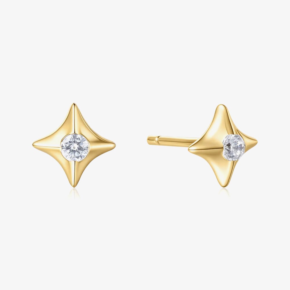 Delicate and radiant, these 4-point star stud earrings are crafted from 14ct gold-plated sterling silver and feature a single sparkling white cubic zirconia at the centre. Their subtle starburst design adds a touch of charm and elegance, making them perfect for everyday wear or as a twinkling accent for special occasions.