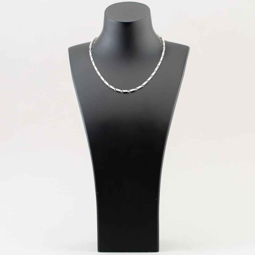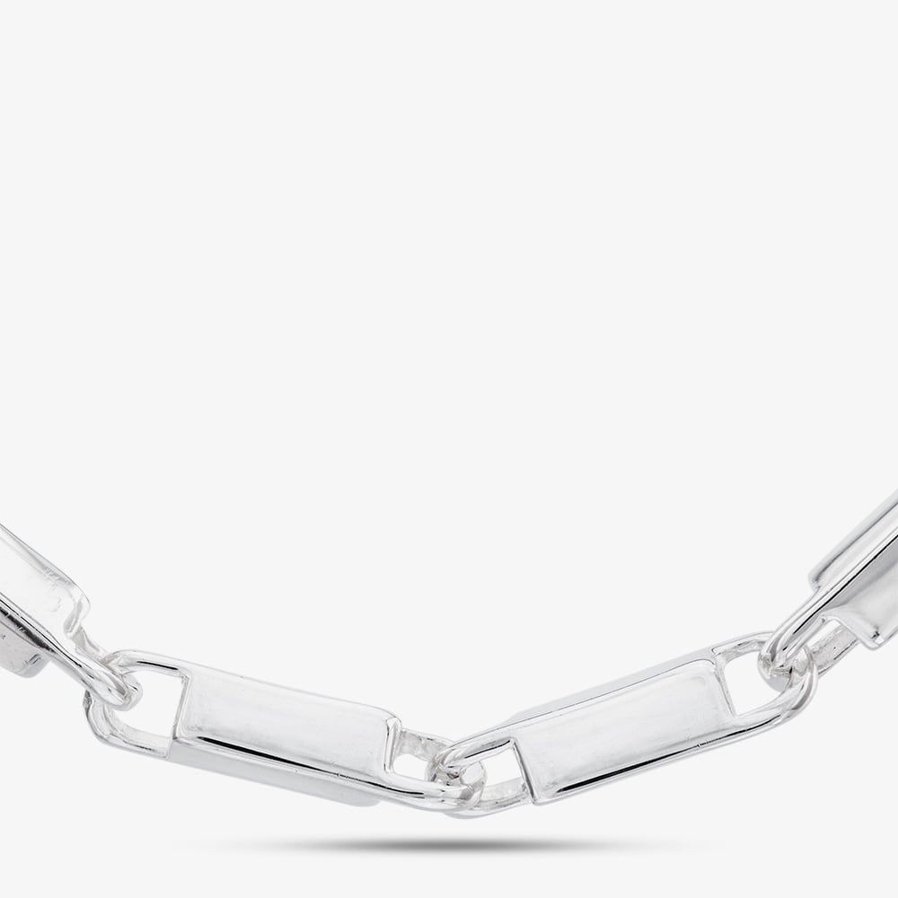 This 17.9-inch Argentium silver necklace features a sleek rectangular bar chain design, secured with a durable lobster clasp for a modern and elegant look.