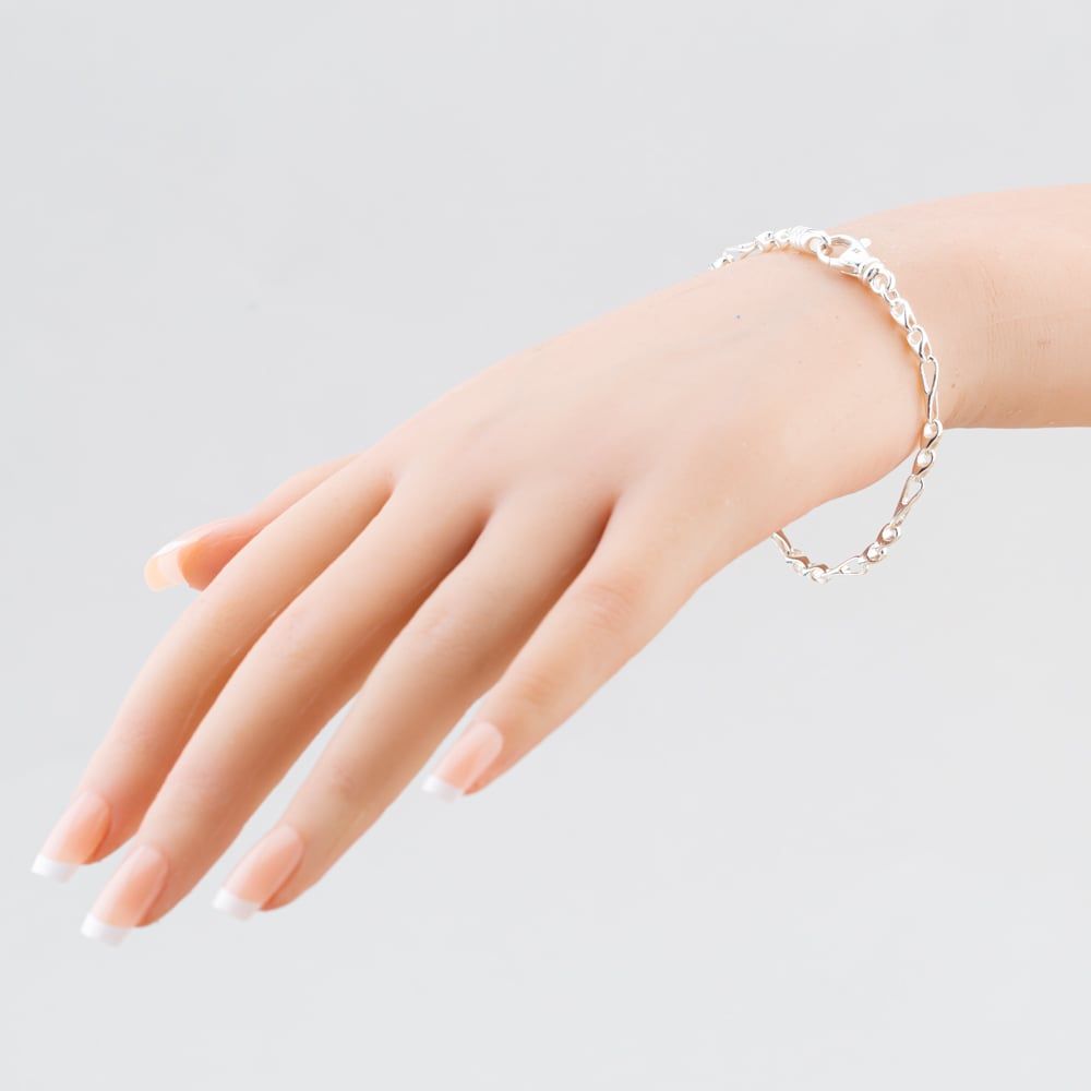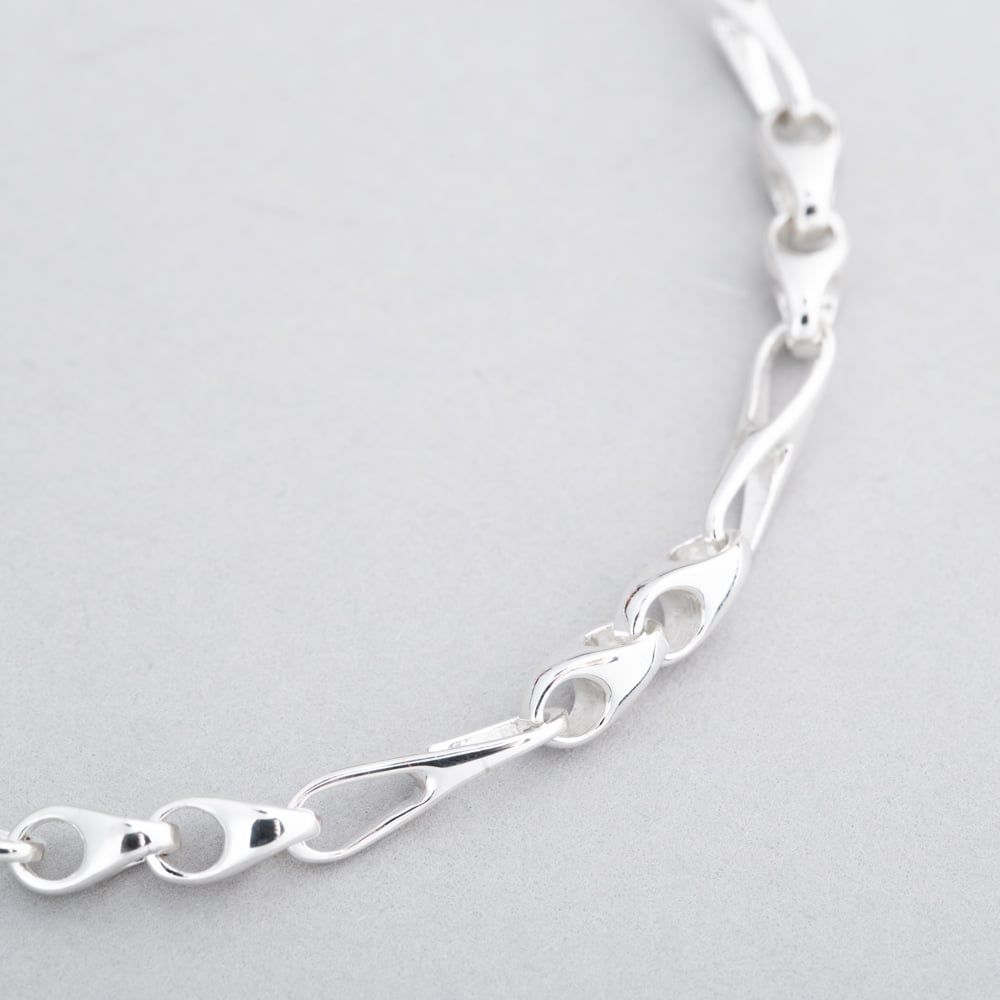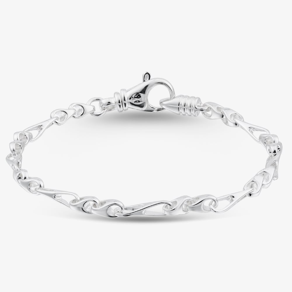 This 7.3-inch Argentium silver bracelet features a sleek fancy Figaro chain with alternating links and a secure lobster clasp, offering a perfect blend of elegance and comfort.