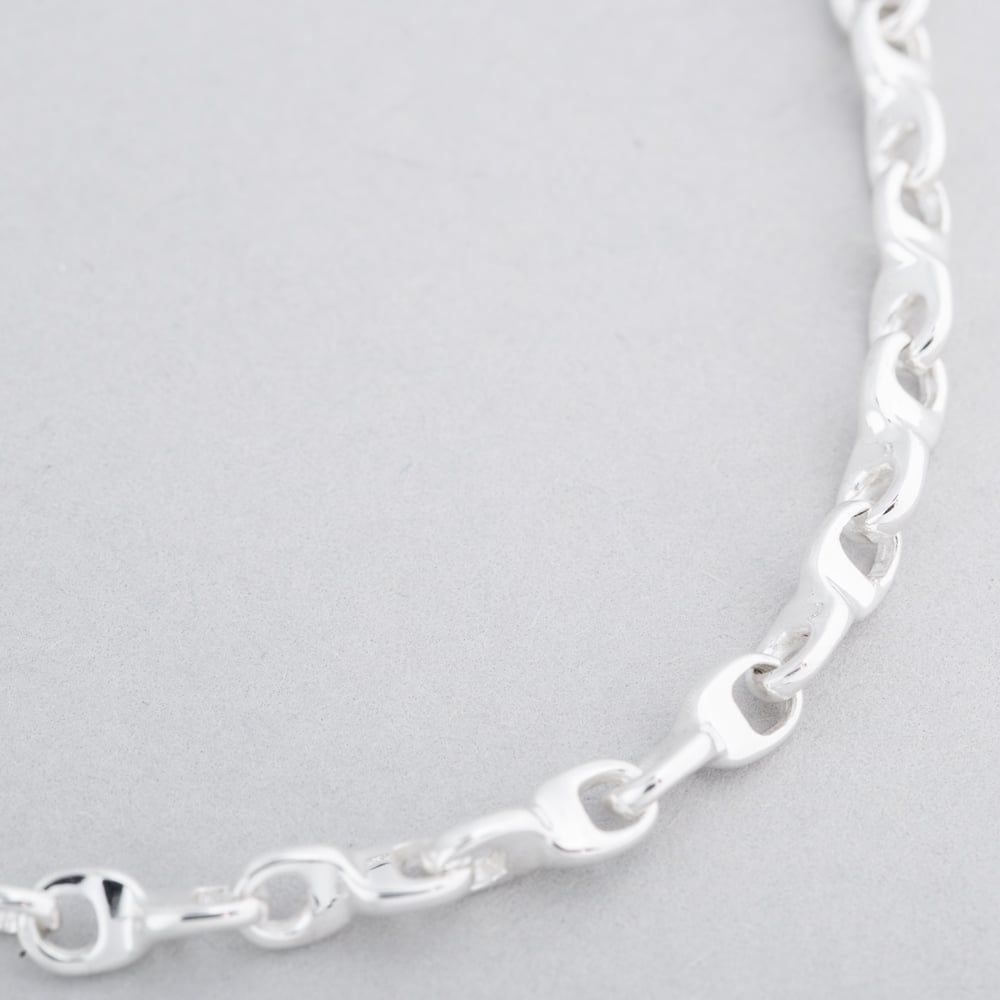 This 7.6-inch Argentium silver bracelet features a classic anchor chain design, combining timeless style with exceptional durability and a brilliant finish.