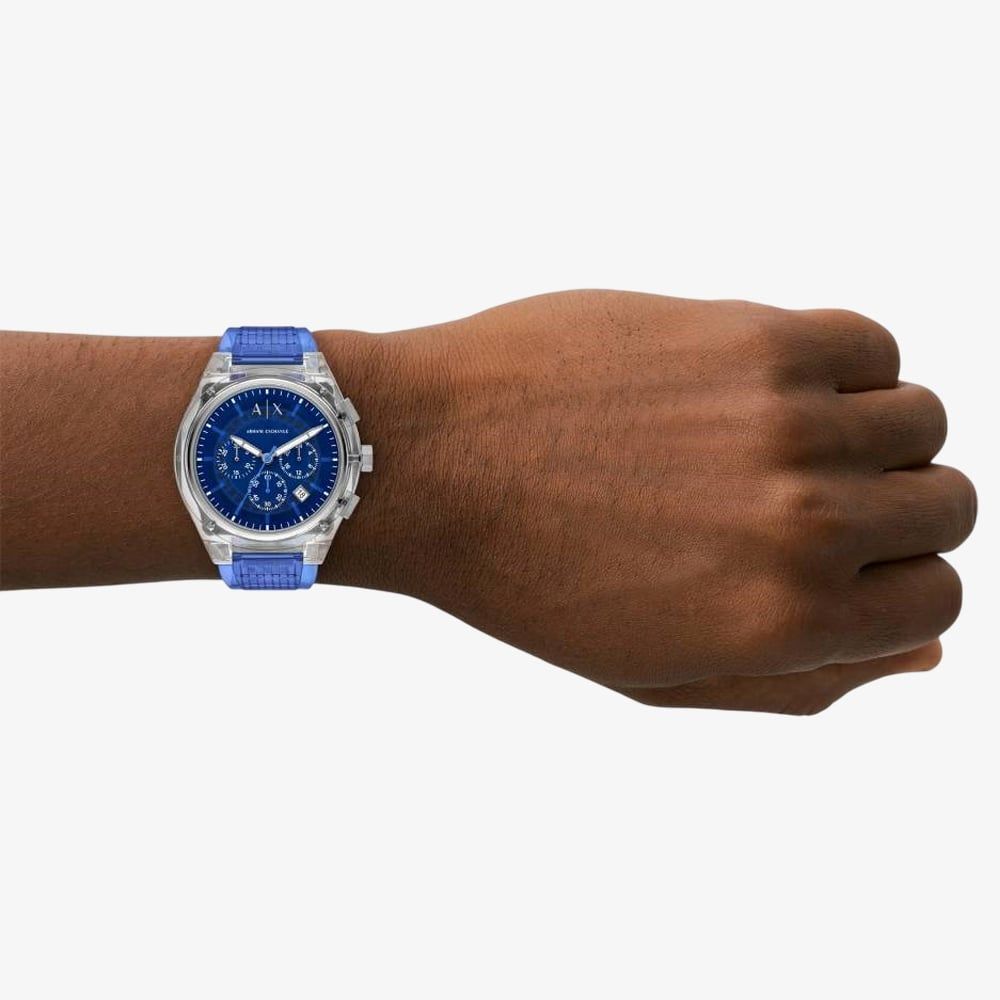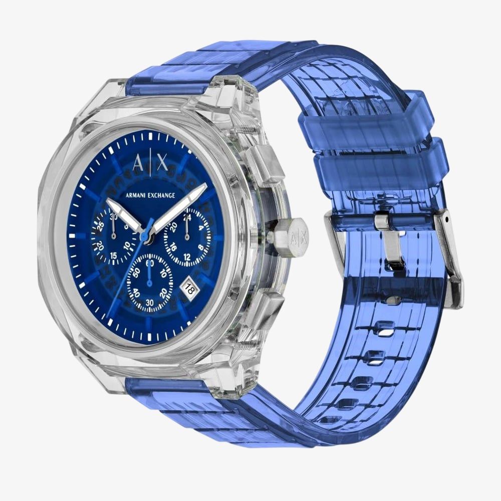 A stylish and sporty timepiece designed for versatility and performance. It features a bold blue dial with contrasting black and silver-tone accents, creating a modern and dynamic look. The chronograph functionality ensures precise timekeeping, while the durable blue plastic strap offers a lightweight and comfortable fit. Perfect for everyday wear or active lifestyles, this watch blends fashion and function, making it a standout accessory for any occasion.