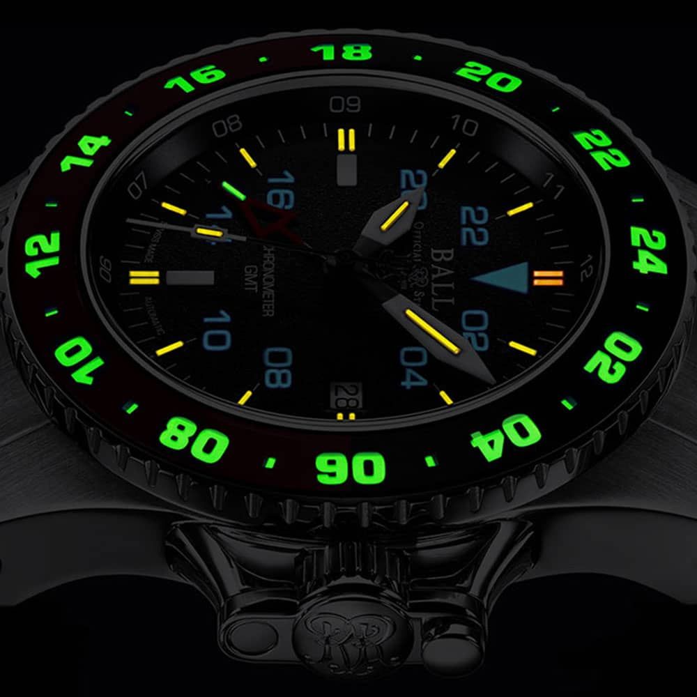 The Engineer Hydrocarbon AeroGMT II is a jet-setting modern classic, meticulously designed for commercial pilots. This highly trusted timepiece excels in navigation, even during the darkest nights, thanks to its bezel illuminated by micro gas tubes, ensuring exceptional visibility in all low-light conditions. Pilots can use the GMT hand to monitor the time in their home city, the 24-hour bezel to track the destination city's time, and the standard hour and minute hands to keep track of the aircraft's local time.