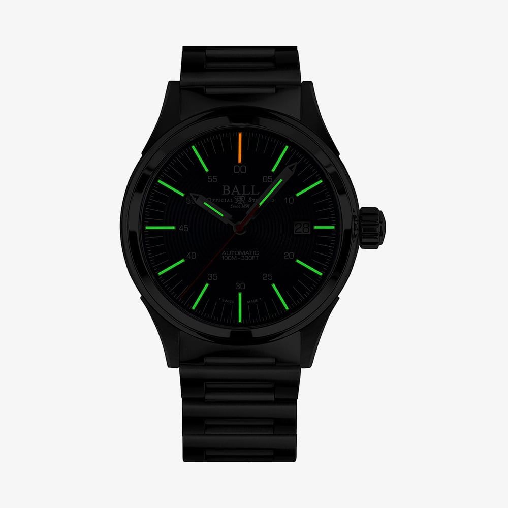 The Fireman NightBreaker showcases BALL's revolutionary micro gas tubes, offering unmatched readability with their tallest design yet at 1.5mm. These tritium-filled tubes glow brightly without needing sunlight or draining battery power, lasting over 10 years. Powered by the automatic RR1103 calibre, this timepiece features BALL’s patented Amortiser® system for shock protection and is water-resistant up to 100 meters. Striking in both appearance and functionality, it's perfect for marking special moments or lighting the way forward.