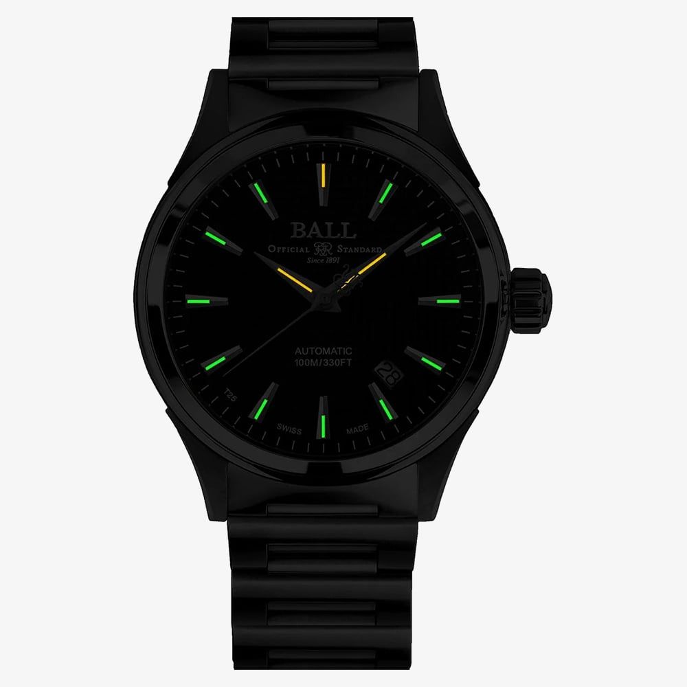The Ball Fireman Victory Men's Black Watch combines rugged durability with sleek style. Made from stainless steel, it features a bold black dial with luminous hands and markers for clear readability. With 100 meters of water resistance, it's perfect for both everyday wear and active adventures, making it a versatile and reliable timepiece.