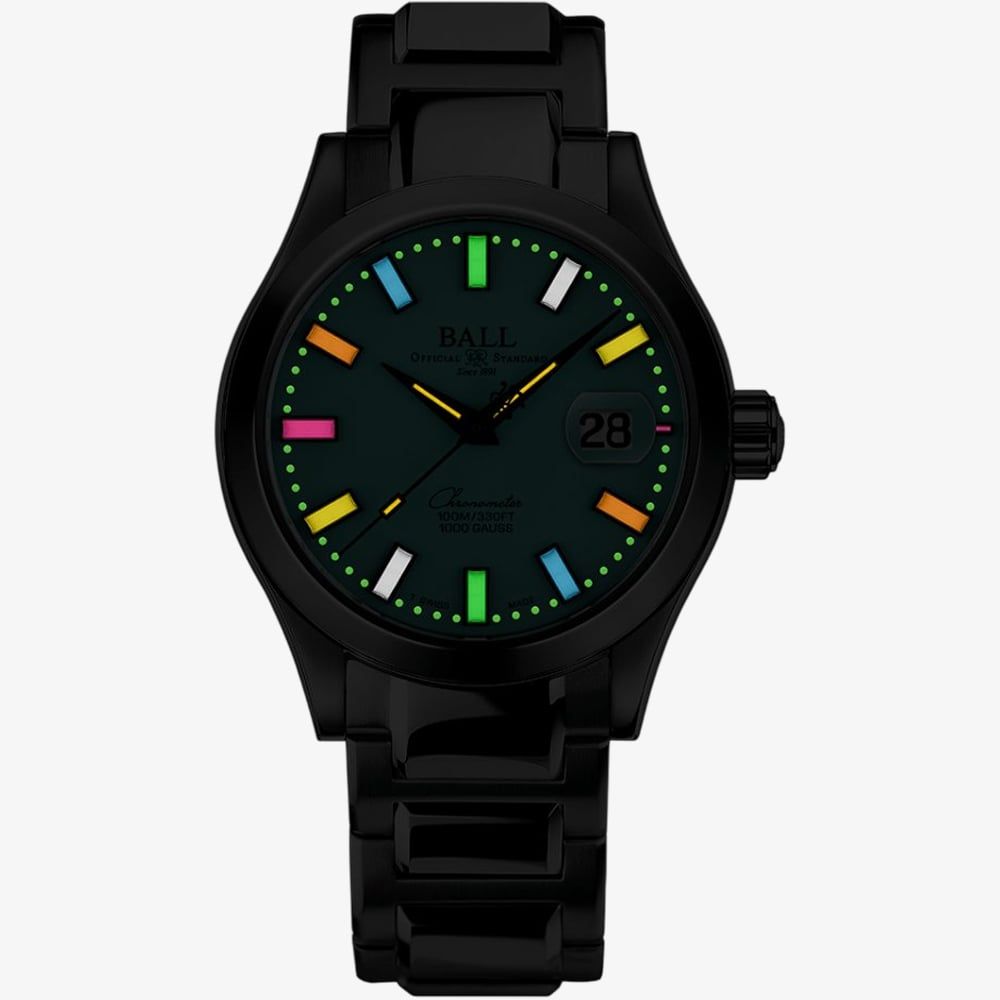 A striking blend of precision engineering and elegance. Its vibrant blue dial, combined with Ball's signature micro gas tube technology, ensures extraordinary readability in low-light conditions while adding a bold pop of colour to its design. Chronometer-certified, this timepiece guarantees exceptional accuracy, powered by a high-performance automatic movement with a power reserve of up to 38 hours. The stainless steel case and bracelet offer durability and a polished aesthetic, making it suitable for both formal and casual occasions. Built with advanced features, including 100m water resistance, anti-magnetic protection, and shock resistance, this watch is a perfect choice for those who seek a stylish, high-performance timepiece.