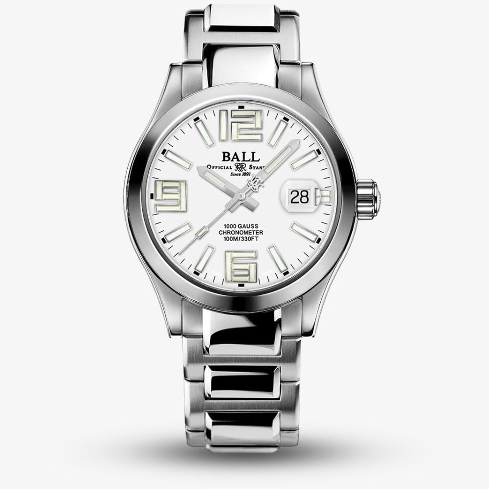 A refined timepiece that combines elegance with exceptional performance. The clean white dial is complemented by a polished stainless steel case and bracelet. The dial is enhanced by Ball's signature micro gas tube technology, ensuring unparalleled visibility in low-light conditions. Powered by a reliable automatic movement with a power reserve of up to 42 hours, this watch offers precise timekeeping and long-lasting performance. With an impressive water resistance of 100m, this timepiece is a durable companion for everyday wear. Blending understated luxury with cutting-edge innovation, this watch is an incredibly versatile accessory for any occasion.