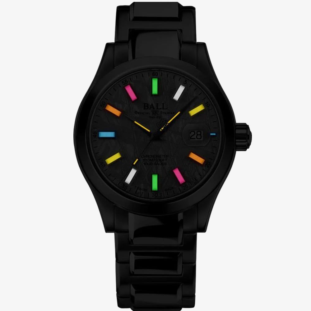 The perfect example of refined elegance and advanced functionality. This timepiece features a radiant silver-tone dial accented with sleek markers illuminated by Ball's signature micro gas tube technology, offering unmatched visibility in low-light conditions. The polished stainless steel case and bracelet enhance its sophisticated and timeless appeal. Powered by a chronometer-certified automatic movement with a power reserve of up to 38 hours, ensuring exceptional precision and reliability. With an impressive 100m water resistance, anti-magnetic protection, and shock resistance, this watch is suitable for both professional and everyday wear. A seamless blend of style and performance, this watch is a versatile accessory, perfect for those who demand accuracy and understated luxury in a single, expertly crafted timepiece.