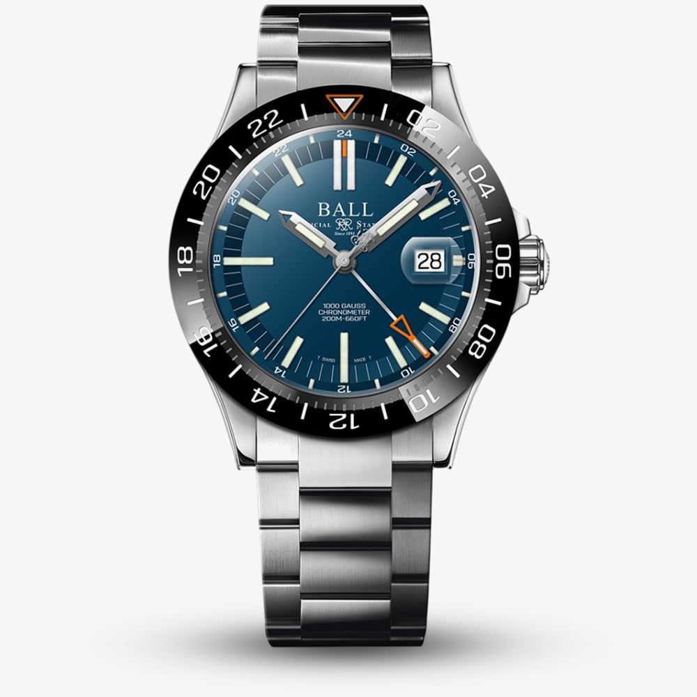 The Ball Engineer III Outlier (40mm) is a bold exploration tool built for precision and clarity. Featuring a deep blue dial and a bidirectional rotating black ceramic bezel, this chronometer-certified timepiece is designed for adventurers who demand both functionality and style. Equipped with a GMT hand and a day window, it offers versatile timekeeping across time zones. With 29 micro gas tubes on the hour, minute, GMT hands, and dial, it delivers exceptional low-light visibility. Limited to just 1,000 pieces, the Outlier stands as a rugged yet refined companion for those who live without limits.