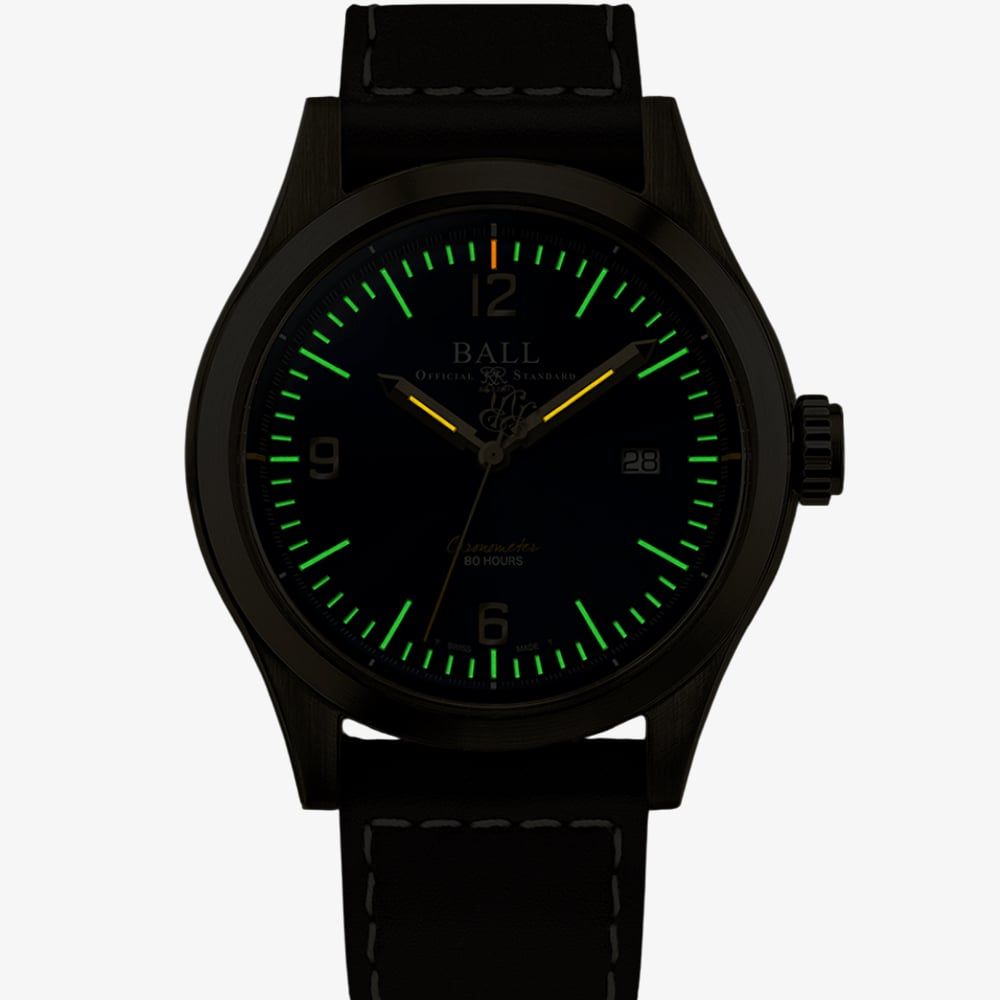 Designed for the modern explorer, this timepiece showcases BALL’s commitment to durability, innovation, and timeless design. The standout feature is its 43mm bronze case. The rich, deep blue dial creates a striking contrast, enhanced by self-powered micro gas tubes that provide exceptional visibility in darkness, a signature hallmark of BALL watches. Fitted with a premium leather strap, the watch offers both rugged appeal and all-day comfort. It is also water-resistant up to 100 metres, making it as practical as it is stylish.