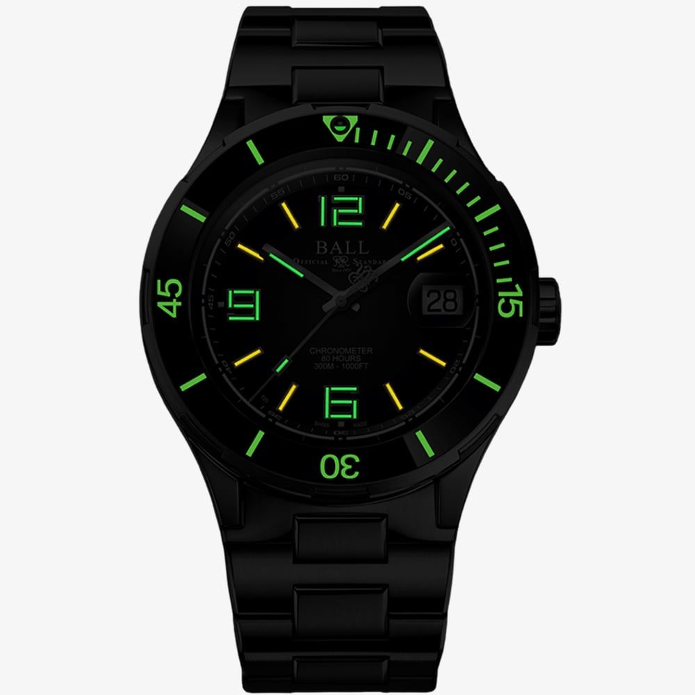 Designed for precision under pressure, this rugged timepiece is made for professionals and adventurers who demand both reliability and refined style. As part of a limited edition series, this model stands out with its bold aesthetics and exceptional performance features. The watch features a sleek black dial, offering a sharp contrast to the luminous hands and markers powered by BALL’s self-powered micro gas tubes—ensuring constant visibility in total darkness. Encased in a robust 42mm stainless steel case with a matching steel bracelet, it’s built to handle extreme environments with ease.