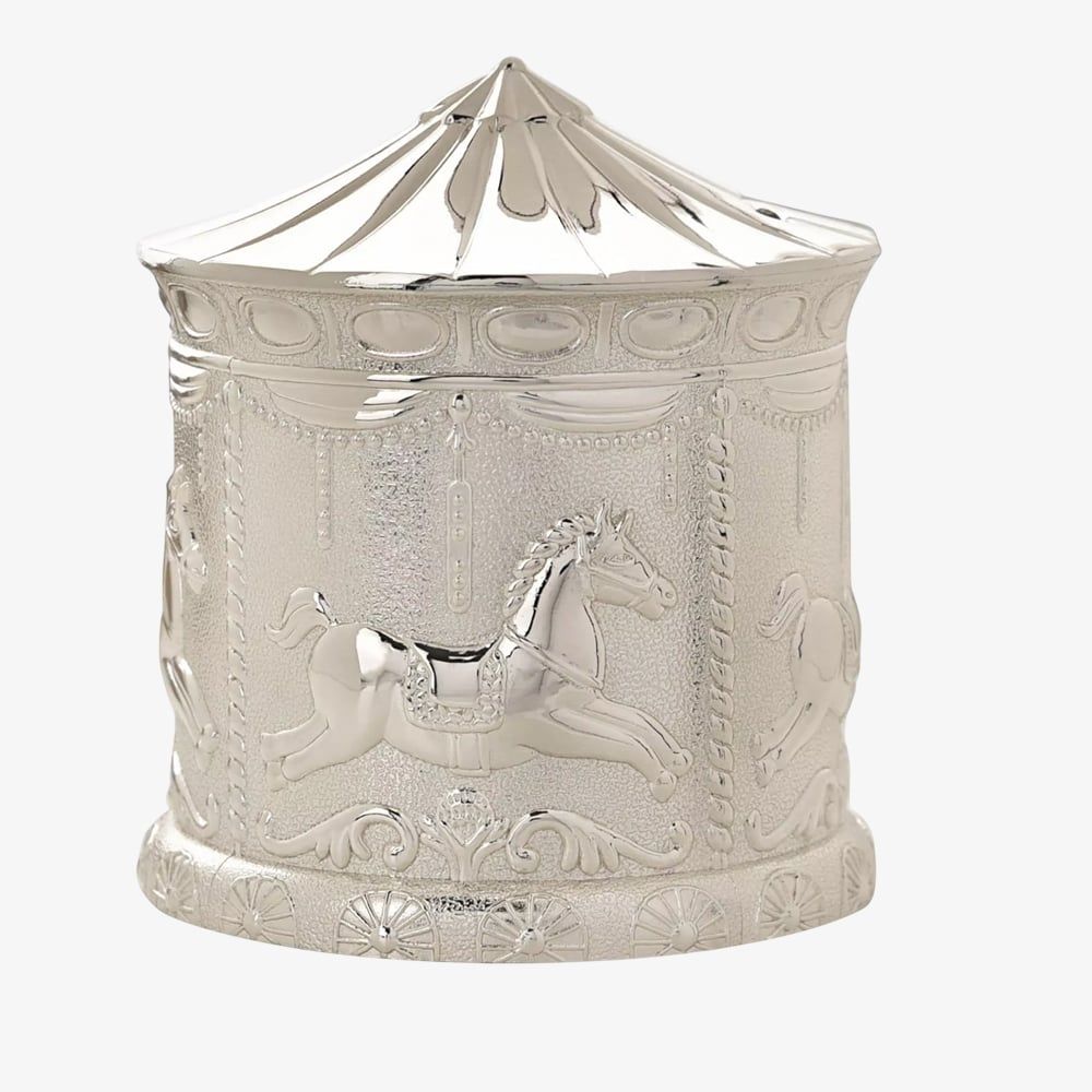 This money box features a beautifully detailed carousel design, capturing the magic and charm of a classic fairground ride.