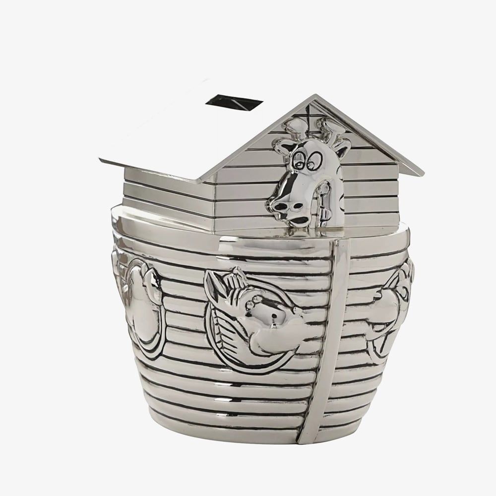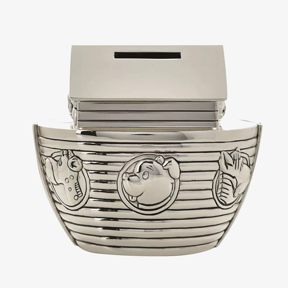 This silver-plated money box from BAMBINO BY JULIANA is a wonderful keepsake that adds a touch of charm to any nursery. The beautifully crafted money box features intricate details that capture the timeless charm of Noah's Ark. With a combination of textured and smooth finishes, it offers a large money slot for saving coins and an easy-to-remove rubber bung on the base. A perfect Christening gift, this silver-plated money box will be cherished for years to come.