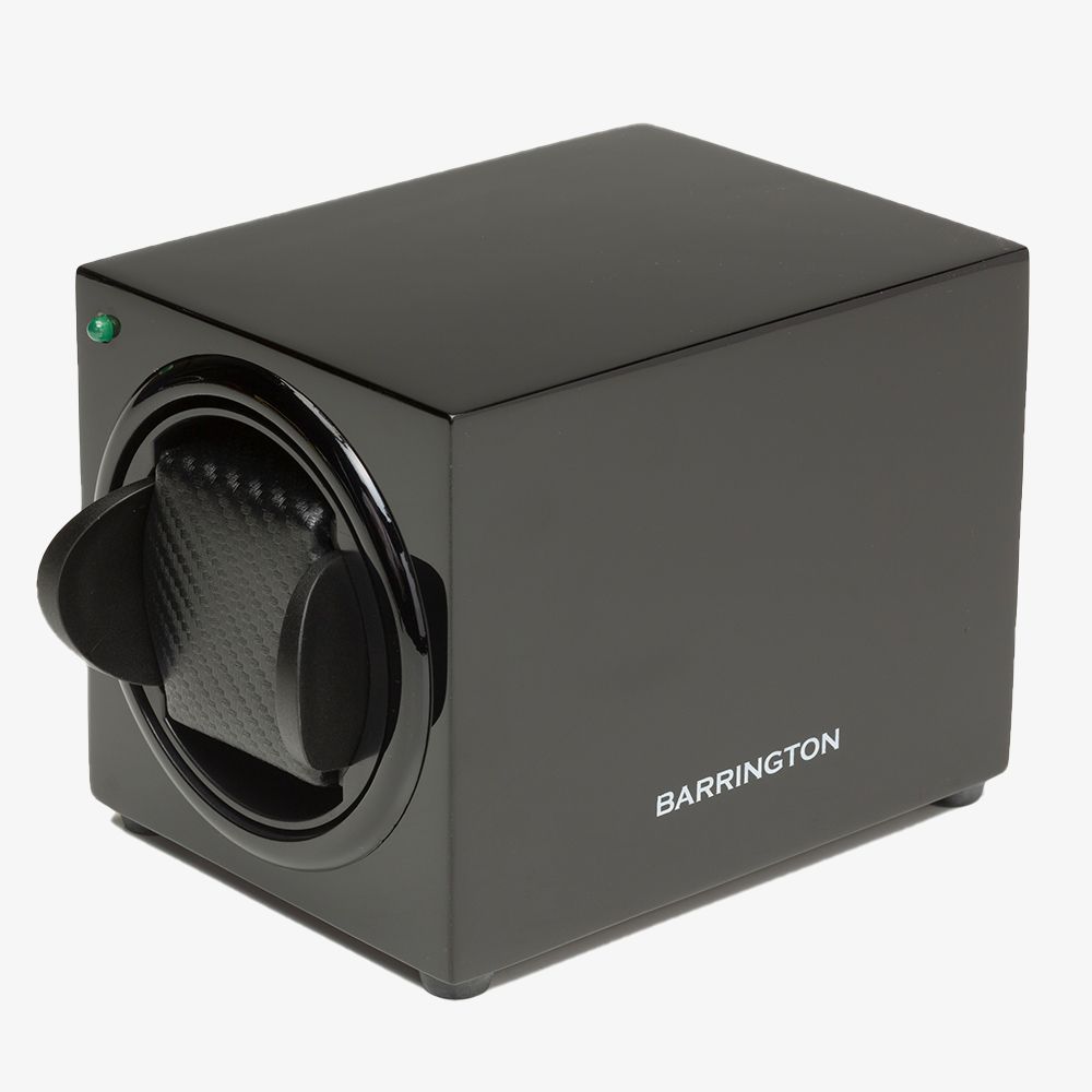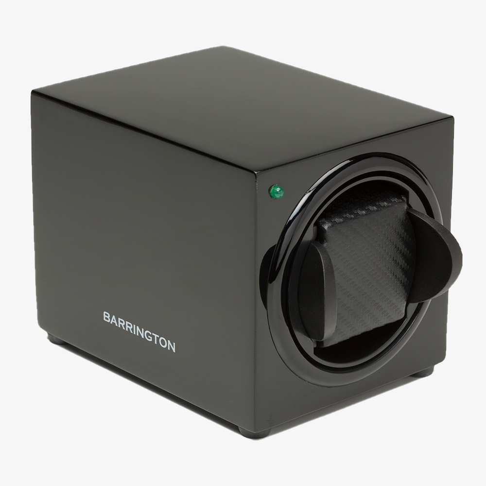 The perfect companion for your automatic watch, the Barrington Ladies Black Watch Winder WW-BLACK is a must-have addition for anyone looking to make winding and resetting their watch more convenient. Measuring 11.5cm x 12cm x 16cm in size, this shadow black watch winder can operate on AA battery power or AC mains and features a small LED light that automatically turns on when the watch winder is operating. Running on an ultra-quiet Japanese motor, the winder offers clockwise, counter clockwise and alternating rotation settings and can run at speeds of 650, 750, 850, 1000 or 1950 turns per day to suit watches of any weight. Fitted with a flex cushion designed for watches with a strap circumference of 14cm-20cm, this watch winder includes Barringtons 'Jump' features, allowing you to connect multiple watch winders through one cable.