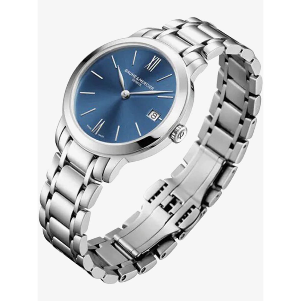https://www.thbaker.co.uk/baume-mercier-ladies-classima-watch-10477112027Baume & Mercier Ladies Classima Watch 10477https://www.thbaker.co.uk/media/catalog/product/2/4/24-09-041_grey.jpg9121300GBPOutOfStockCLASSIMA SS BW BLU DL DT The Baume & Mercier Ladies Classima Watch 10477 combines a 31mm round shaped stainless steel case and a stainless steel bracelet with a triple folding clasp with security push-pieces. It has a sun-satin finished blue analogue dial with rhodium plated hands and a date window at three o-clock, which is protected beneath sapphire crystal glass. Power is generated by the quartz movement. This model also has a water resistance of up to 50 metres.Baume & Mercierhttps://www.thbaker.co.uk/media/catalog/product/1/0/10477-2.jpghttps://www.thbaker.co.uk/media/catalog/product/b/a/baume-and-mercier-packaging_7.jpg7613375149996condition:Nodisc_no_stock:Yesex_display:NoNoYesNo2409041Baume & Mercier10477LadiesOfficial Baume & Mercier Packaging2 Year Baume & Mercier WarrantyLuxuryNoClassimaWatchSilverStainless Steel BraceletStainless SteelRound6.0mm31mmAnalogueSapphire Crystal GlassBlue50 metresQuartzPush Button Deployment ClaspNo StoneNoNoNoNoYesNoNoBaume & Mercier Ladies Classima Watch24-09-0412021-11-29 00:00:00[]2021-11-29
