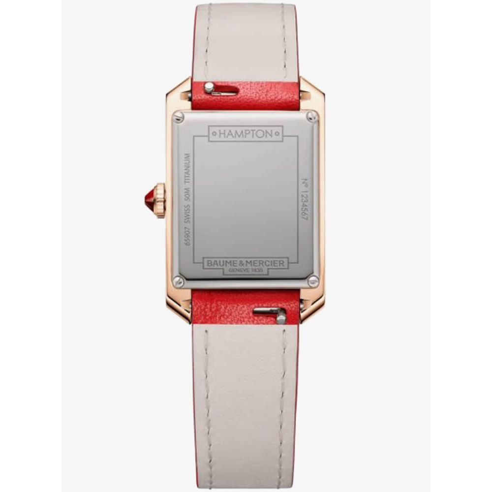 https://www.thbaker.co.uk/baume-mercier-ladies-hampton-leather-strap-watch-10628112029Baume & Mercier Ladies Hampton Leather Strap Watch 10628https://www.thbaker.co.uk/media/catalog/product/2/4/24-09-043_grey.jpg27603650GBPOutOfStockHAMPTON 18CT RG RED SW The Baume & Mercier Ladies Hampton Watch 10628 combines a 22.2mm rectangular 18ct Rose Gold and titanium case and a red orange leather strap with a traditional buckle fastening. It has a silver tone opaline analogue dial with gilt hands and indexes, which is protected beneath sapphire crystal glass. Power is generated by the quartz movement. This model also has a water resistance of up to 50 metres.Baume & Mercierhttps://www.thbaker.co.uk/media/catalog/product/1/0/10628-3.jpghttps://www.thbaker.co.uk/media/catalog/product/1/0/10628-2.jpghttps://www.thbaker.co.uk/media/catalog/product/b/a/baume-and-mercier-packaging_9.jpg7613375589853add-to-cartcondition:Nodisc_no_stock:Yesex_display:NoNoYesNo2409043Baume & Mercier10628LadiesOfficial Baume & Mercier Packaging2 Year Baume & Mercier WarrantyLuxuryNoHamptonWatchRedLeather Strap18ct Rose GoldRectangle7.0mm22mmAnalogueSapphire Crystal GlassSilver50 metresQuartzPin BuckleNo StoneNoNoNoNoNoNoNoBaume & Mercier Ladies Hampton Leather Strap Watch24-09-0432021-11-29 00:00:00[]2021-11-29