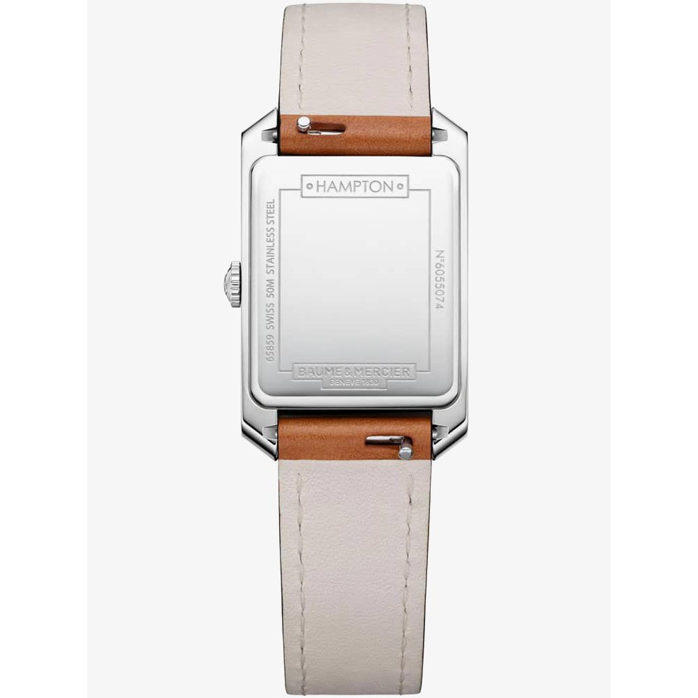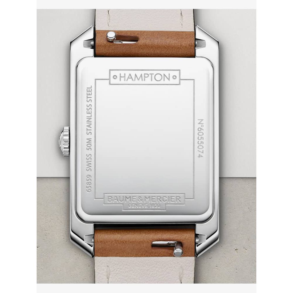 https://www.thbaker.co.uk/baume-mercier-ladies-hampton-watch-10472103963Baume & Mercier Ladies Hampton Watch 10472https://www.thbaker.co.uk/media/catalog/product/2/4/24-09-011_grey.jpg12001440GBPOutOfStockHAMPTON SS TAN SW RECT WH The Baume & Mercier 10472 Hampton watch combines a rectangular shaped stainless steel case and light brown leather strap with a buckle clasp. The case measures 22mm wide by 35mm long. It has a silver dial with gold tone hands and hour markers which is protected beneath curved scratch resistant sapphire crystal glass. Power is generated by the Swiss made MHH057 quartz movement. This model also has a water resistance of up to 50 metres.Baume & Mercierhttps://www.thbaker.co.uk/media/catalog/product/2/4/24-09-011_08_grey.jpghttps://www.thbaker.co.uk/media/catalog/product/2/4/24-09-011_03_grey.jpghttps://www.thbaker.co.uk/media/catalog/product/2/4/24-09-011_07_grey.jpghttps://www.thbaker.co.uk/media/catalog/product/2/4/24-09-011_02_grey.jpghttps://www.thbaker.co.uk/media/catalog/product/2/4/24-09-011_06_grey.jpghttps://www.thbaker.co.uk/media/catalog/product/2/4/24-09-011_10_grey.jpghttps://www.thbaker.co.uk/media/catalog/product/2/4/24-09-011_05_grey.jpghttps://www.thbaker.co.uk/media/catalog/product/2/4/24-09-011_09_grey.jpghttps://www.thbaker.co.uk/media/catalog/product/2/4/24-09-011_04_grey.jpghttps://www.thbaker.co.uk/media/catalog/product/b/a/baume-and-mercier-packaging_grey.jpg7613375150404add-to-cartcondition:Noex_display:NoNoNo2409011Baume & Mercier10472LadiesOfficial Baume & Mercier Packaging2 Year Baume & Mercier WarrantyLuxuryNoHamptonWatchBrownLeather StrapStainless SteelRectangle7.0mm22mmAnalogueSapphire Crystal GlassSilver50 metresQuartzPin BuckleNo StoneNoNoNoNoNoNoNoBaume & Mercier Ladies Hampton Watch24-09-0112021-04-21 00:00:002021-04-21