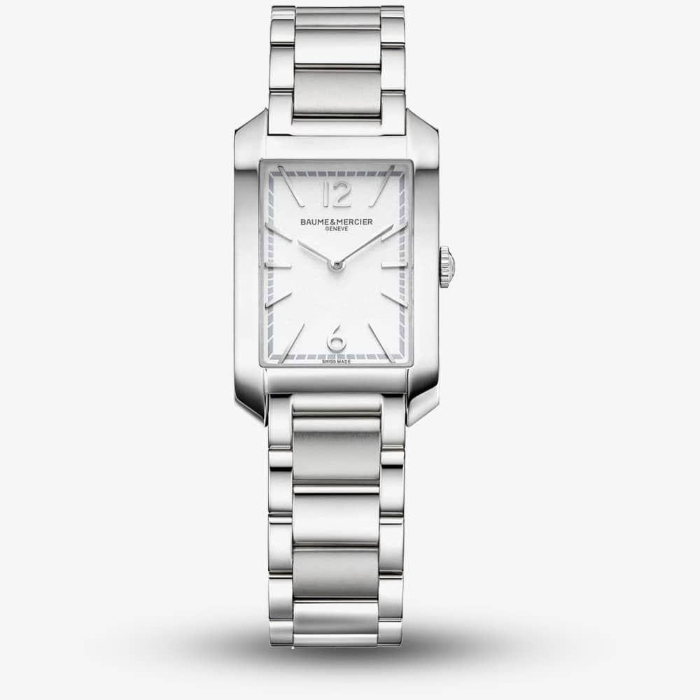 https://www.thbaker.co.uk/baume-mercier-ladies-hampton-watch-10473103964Baume & Mercier Ladies Hampton Watch 10473https://www.thbaker.co.uk/media/catalog/product/2/4/24-09-012_grey.jpg12561800GBPOutOfStockHAMPTON SS BW RECT SIL DL The Baume & Mercier 10473 Hampton watch combines a rectangular shaped stainless steel case and bracelet with a fold over clasp. The case measures 22mm wide by 35mm long. It has a silver analogue dial with silver tone hands which is protected beneath curved scratch resistant sapphire crystal glass. Power is generated by the Swiss made MHH057 quartz movement. This model also has a water resistance of up to 50 metres.Baume & Mercierhttps://www.thbaker.co.uk/media/catalog/product/2/4/24-09-012_02_grey.jpghttps://www.thbaker.co.uk/media/catalog/product/b/a/baume-and-mercier-packaging_grey.jpg7613375150244condition:Noex_display:NoNoNo2409012Baume & Mercier10473LadiesOfficial Baume & Mercier Packaging2 Year Baume & Mercier WarrantyLuxuryNoHamptonWatchSilverStainless Steel BraceletStainless SteelRectangle7.0mm22mmAnalogueSapphire Crystal GlassSilver50 metresQuartzFold Over ClaspNo StoneNoNoNoNoNoNoNoBaume & Mercier Ladies Hampton Watch24-09-0122021-04-21 00:00:002021-04-21