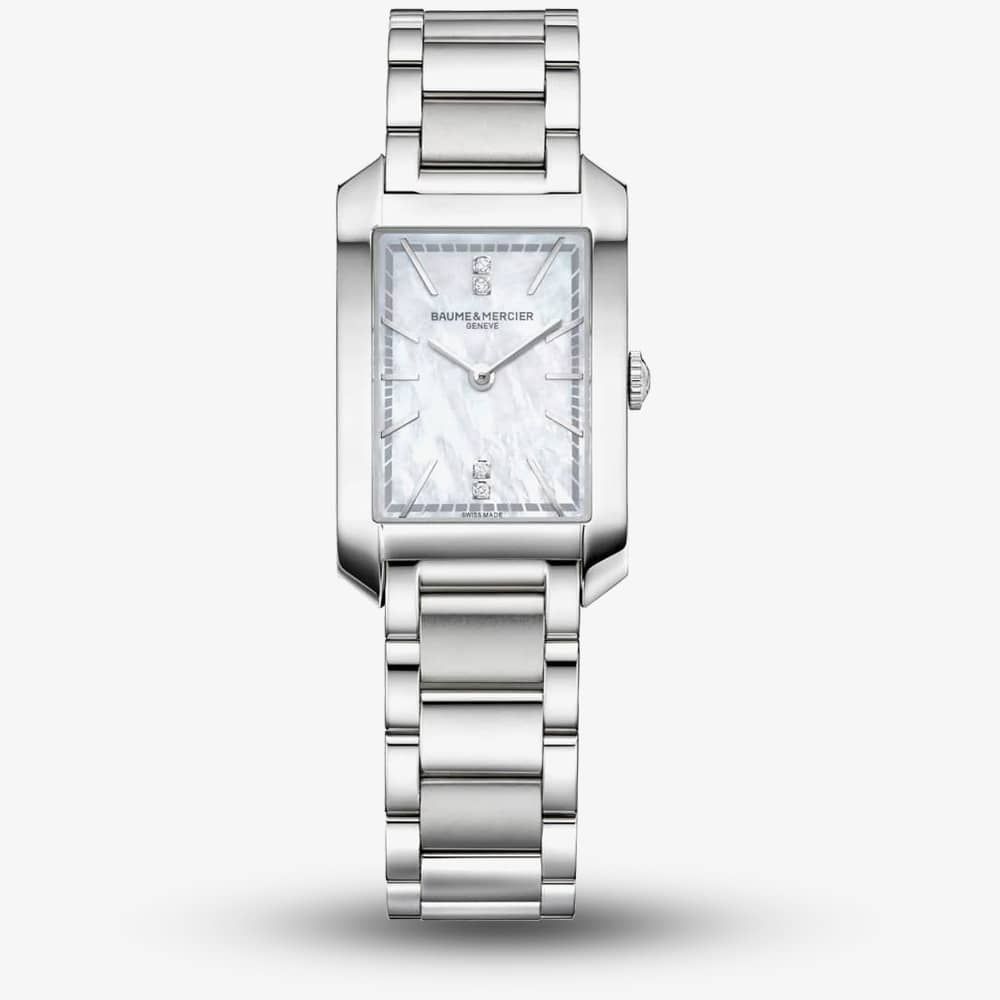 https://www.thbaker.co.uk/baume-mercier-ladies-hampton-watch-10474103965Baume & Mercier Ladies Hampton Watch 10474https://www.thbaker.co.uk/media/catalog/product/2/4/24-09-013_grey.jpg15922100GBPOutOfStockHAMPTON SS BW MOP DIA DL The Baume & Mercier 10474 Hampton watch combines a rectangular shaped stainless steel case and bracelet with a fold over clasp. The case measures 22mm wide by 35mm long. It has a mother of pearl analogue dial with silver tone hands and four diamonds totalling 0.02ct, all of which is protected beneath curved scratch resistant sapphire crystal glass. Power is generated by the Swiss made MHH057 quartz movement. This model also has a water resistance of up to 50 metres.Baume & Mercierhttps://www.thbaker.co.uk/media/catalog/product/2/4/24-09-013_02_grey.jpghttps://www.thbaker.co.uk/media/catalog/product/b/a/baume-and-mercier-packaging_grey.jpg7613375150206condition:Noex_display:NoNoNo2409013Baume & Mercier10474LadiesOfficial Baume & Mercier Packaging2 Year Baume & Mercier WarrantyLuxuryNoHamptonWatchSilverStainless Steel BraceletStainless SteelRectangle7.0mm22mmAnalogueSapphire Crystal GlassMother of Pearl50 metresQuartzFold Over ClaspDiamondNoNoNoNoNoNoNoBaume & Mercier Ladies Hampton Watch24-09-0132021-04-21 00:00:002021-04-21