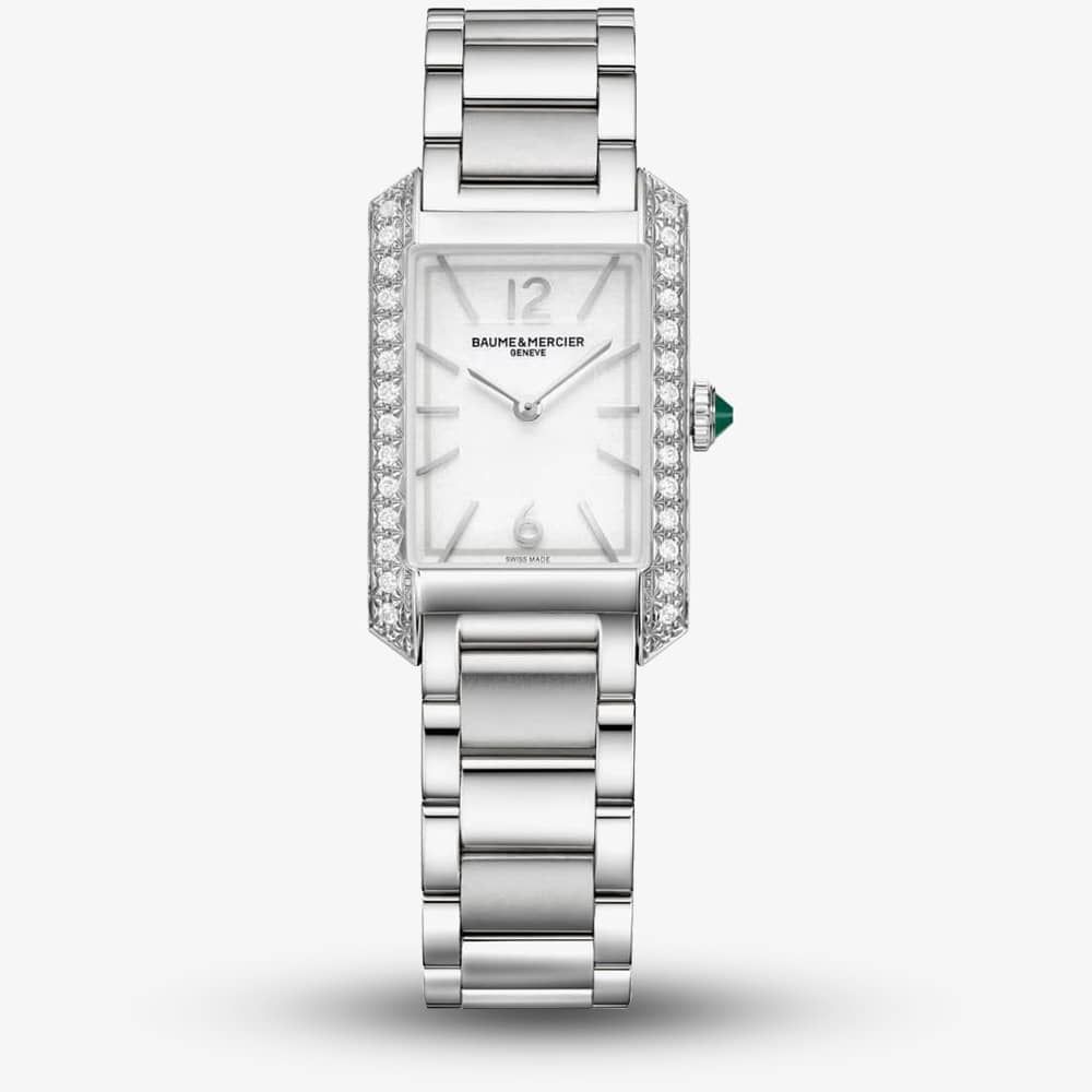 https://www.thbaker.co.uk/baume-mercier-ladies-hampton-watch-10631108637Baume & Mercier Ladies Hampton Watch 10631https://www.thbaker.co.uk/media/catalog/product/2/4/24-09-033_grey.jpg23923275GBPOutOfStockHAMPTON SS BW RECT DL DIA The Baume & Mercier 10631 Hampton watch combines a 35mm rectangular shaped stainless steel case and bracelet with a fold over clasp. It has a silver analogue dial which is protected beneath scratch resistant sapphire crystal glass. Power is generated by the Swiss made MHH057 quartz movement. This model also has a water resistance of up to 50 metres, a diamond set bezel with 0.35ct in total, and a green chrysoprase stone set into the crown symbolizing new beginnings and known for fostering sweetness, good intuition and luck.Baume & Mercierhttps://www.thbaker.co.uk/media/catalog/product/2/4/24-09-033_baumemercier_02.jpghttps://www.thbaker.co.uk/media/catalog/product/2/4/24-09-033_baumemercier_03.jpghttps://www.thbaker.co.uk/media/catalog/product/2/4/24-09-033_baumemercier_04.jpghttps://www.thbaker.co.uk/media/catalog/product/b/a/baume-and-mercier-packaging_4.jpg7613375590392condition:Nodisc_no_stock:Yesex_display:NoNoYesNo2409033Baume & Mercier10631LadiesOfficial Baume & Mercier Packaging2 Year Baume & Mercier WarrantyLuxuryNoHamptonWatchSilverStainless Steel BraceletStainless SteelRectangle7.0mm35mmAnalogueSapphire Crystal GlassSilver50 metresQuartzFold Over ClaspDiamondNoNoNoNoNoNoNoBaume & Mercier Ladies Hampton Watch24-09-0332021-09-14 00:00:00[]2021-09-14