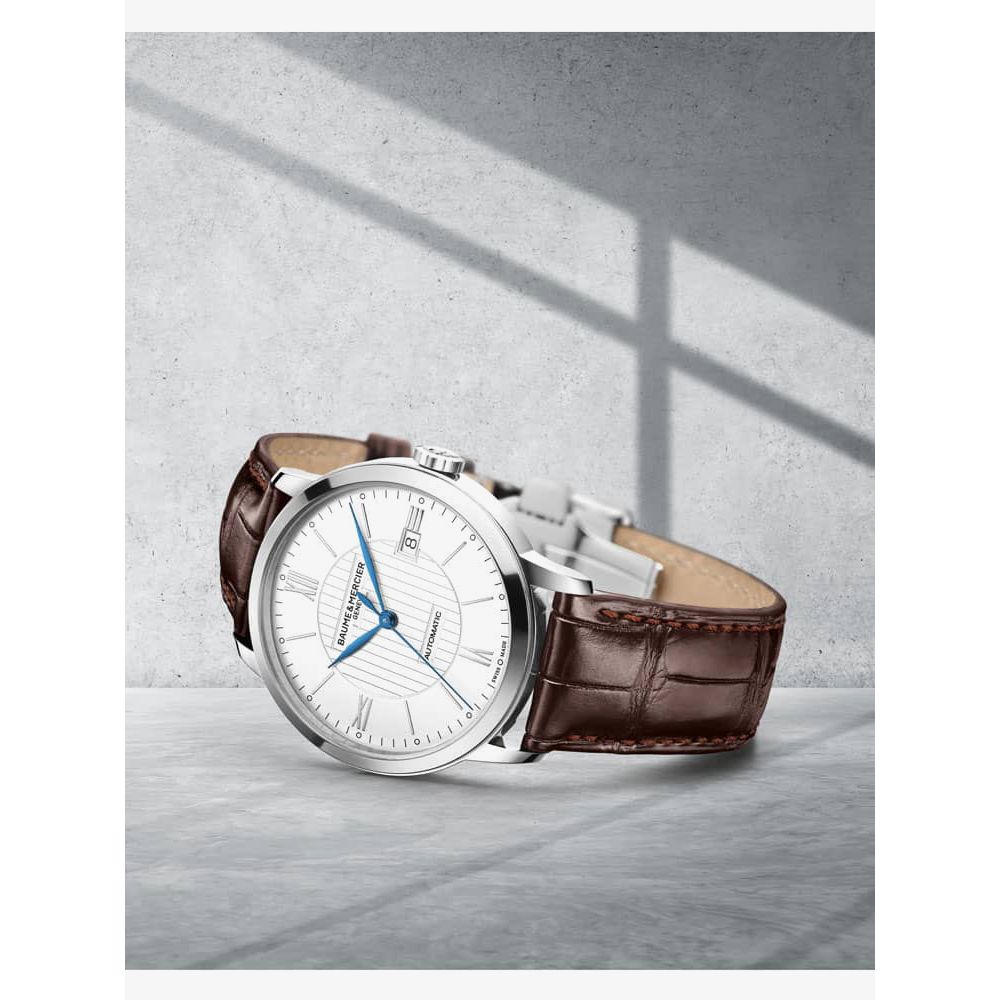 https://www.thbaker.co.uk/baume-mercier-mens-classima-watch-10214103970Baume & Mercier Mens Classima Watch 10214https://www.thbaker.co.uk/media/catalog/product/2/4/24-10-002_grey.jpg12002400GBPOutOfStockCLASSIMA SS BRN SW SIL DL The Baume & Mercier 10214 Classima watch combines a 40mm round shaped stainless steel case and brown leather strap with a triple folding clasp and push button. It has a white analogue dial with blue hands and a date display which is protected beneath scratch resistant sapphire crystal glass. Power is generated by the Swiss made Sellita SW200 automatic movement with 26 Rubies and a 38 hour power reserve. This model also has a sapphire crystal case back and a water resistance of up to 50 metres.Baume & Mercierhttps://www.thbaker.co.uk/media/catalog/product/2/4/24-10-002_04_grey.jpghttps://www.thbaker.co.uk/media/catalog/product/2/4/24-10-002_03_grey.jpghttps://www.thbaker.co.uk/media/catalog/product/2/4/24-10-002_02_grey.jpghttps://www.thbaker.co.uk/media/catalog/product/2/4/24-10-002_06_grey.jpghttps://www.thbaker.co.uk/media/catalog/product/2/4/24-10-002_05_grey.jpghttps://www.thbaker.co.uk/media/catalog/product/b/a/baume-and-mercier-packaging_grey.jpg7613268448311add-to-cartcondition:Noex_display:NoNoNo2410002Baume & Mercier10214MensOfficial Baume & Mercier Packaging2 Year Baume & Mercier WarrantyLuxuryNoClassimaWatchBrownLeather StrapStainless SteelRound9.0mm40mmAnalogueSapphire Crystal GlassWhite50 metresAutomaticPush Button Deployment ClaspNo StoneNoNoNoNoYesNoNoBaume & Mercier Mens Classima Watch24-10-0022021-04-21 00:00:002021-04-21