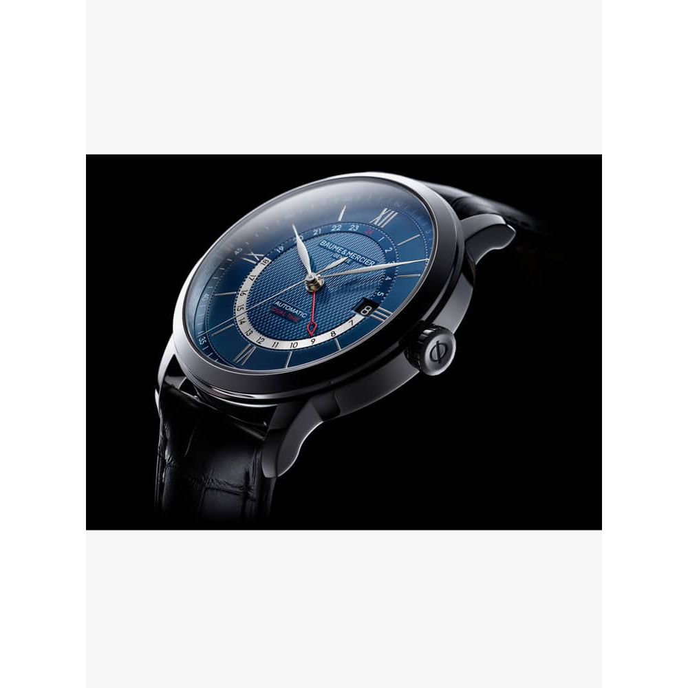 The Baume & Mercier 10482 Classima watch combines a 42mm round shaped stainless steel case and black leather strap with a triple folding clasp and push button. It has a blue analogue dial with a date display and a red pointer indicating a 2nd time zone, all of which is protected beneath scratch resistant sapphire crystal glass. Power is generated by the Swiss made ETA 2893-2 automatic movement with 21 rubies and a power reserve of up to 42 hours. This model also has a sapphire crystal case back and water resistance of up to 50 metres.Baume & Mercierhttps://www.thbaker.co.uk/media/catalog/product/2/4/24-10-014_04_grey.jpghttps://www.thbaker.co.uk/media/catalog/product/2/4/24-10-014_03_grey.jpghttps://www.thbaker.co.uk/media/catalog/product/2/4/24-10-014_02_grey.jpghttps://www.thbaker.co.uk/media/catalog/product/b/a/baume-and-mercier-packaging_grey_1.jpg7613375148883add-to-cartcondition:Nodisc_no_stock:Yesex_display:NoNoYesNo2410014Baume & Mercier10482MensOfficial Baume & Mercier Packaging2 Year Baume & Mercier WarrantyLuxuryNoClassimaWatchBlackLeather StrapStainless SteelRound9.0mm42mmAnalogueSapphire Crystal GlassBlue50 metresAutomaticPush Button Deployment ClaspNo StoneNoNoNoNoYesNoNoEx-Display Baume & Mercier Mens Classima Watch24-10-0142021-04-21 00:00:000[]2021-04-21